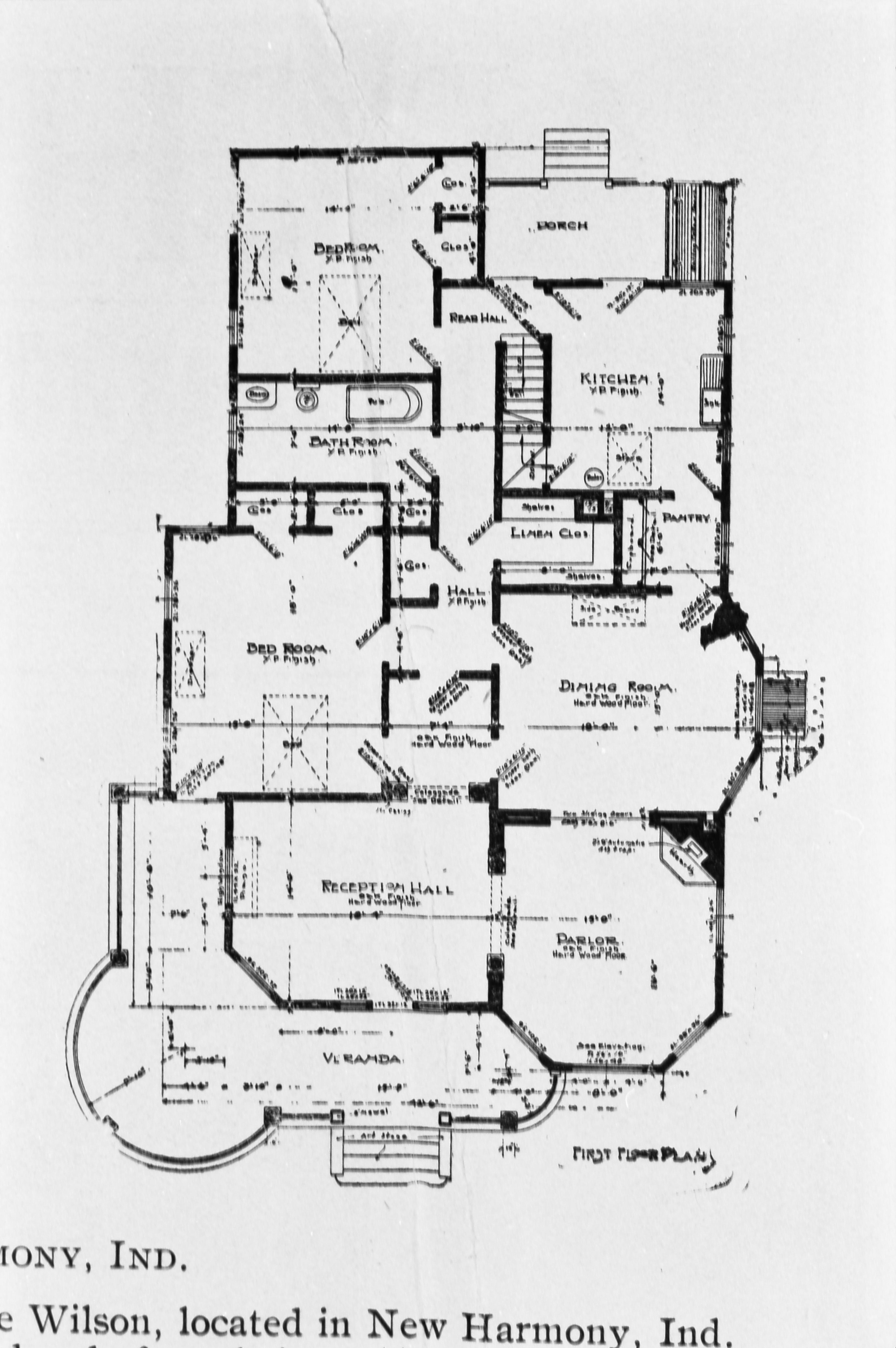 Transparencies and Negatives Collection: Historic photographs. This photo shows the ground floor plans, designed by F. J. Schplatter of Evansville Indiana, for the L. Wade Wilson/ Boyer House located on east Church Street across from Maclure Park.