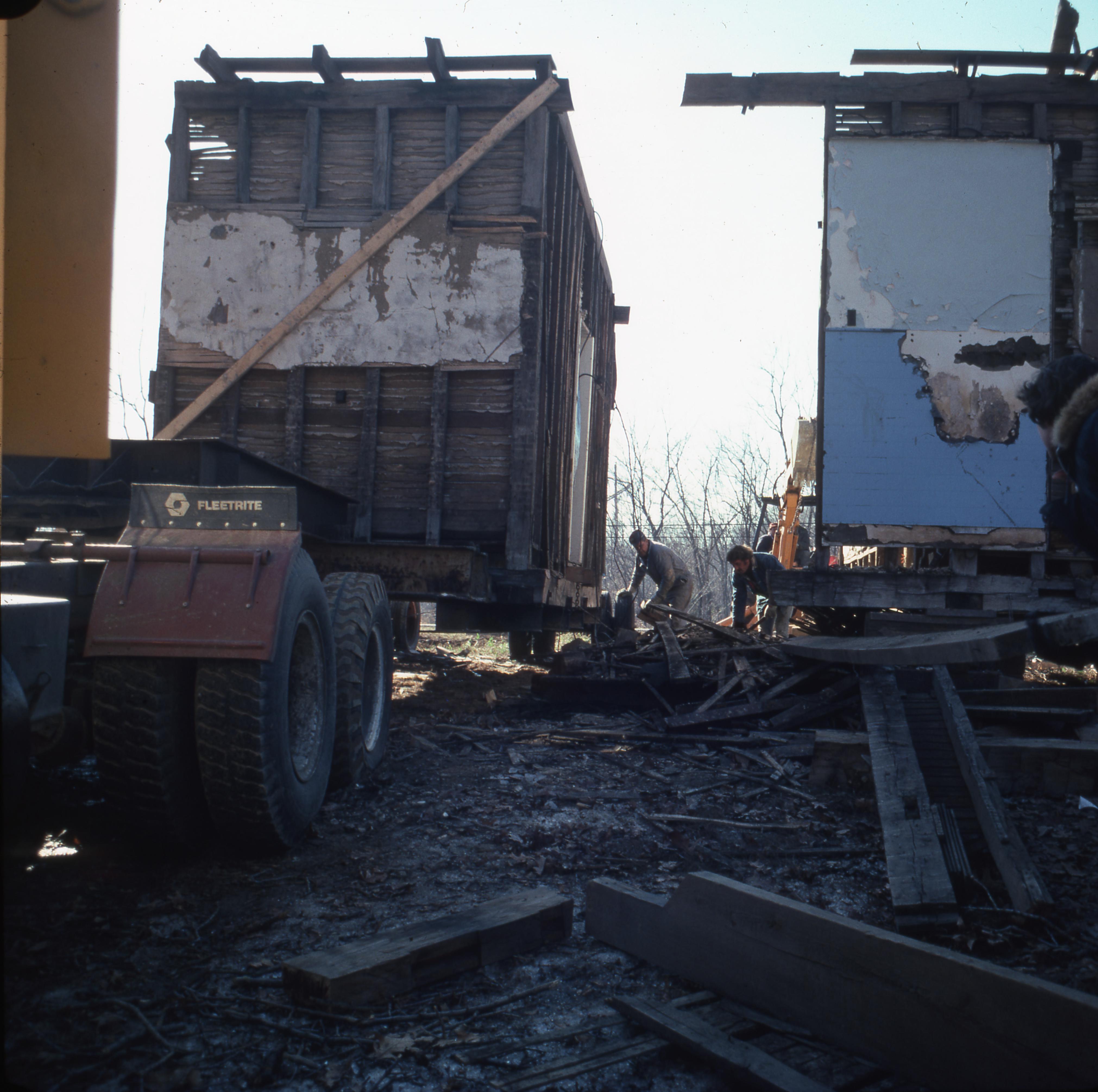 The Jaquess House: This is a photo of the Jaquess House, from which the parlor was taken, was moved from somewhere near Poseyville. It was then taken through a field to near the edge of a highway where it was dismantled. The parlor was then incorporated into the Owen House on the corner of Tavern and Brewery Streets in town block 6 E east.