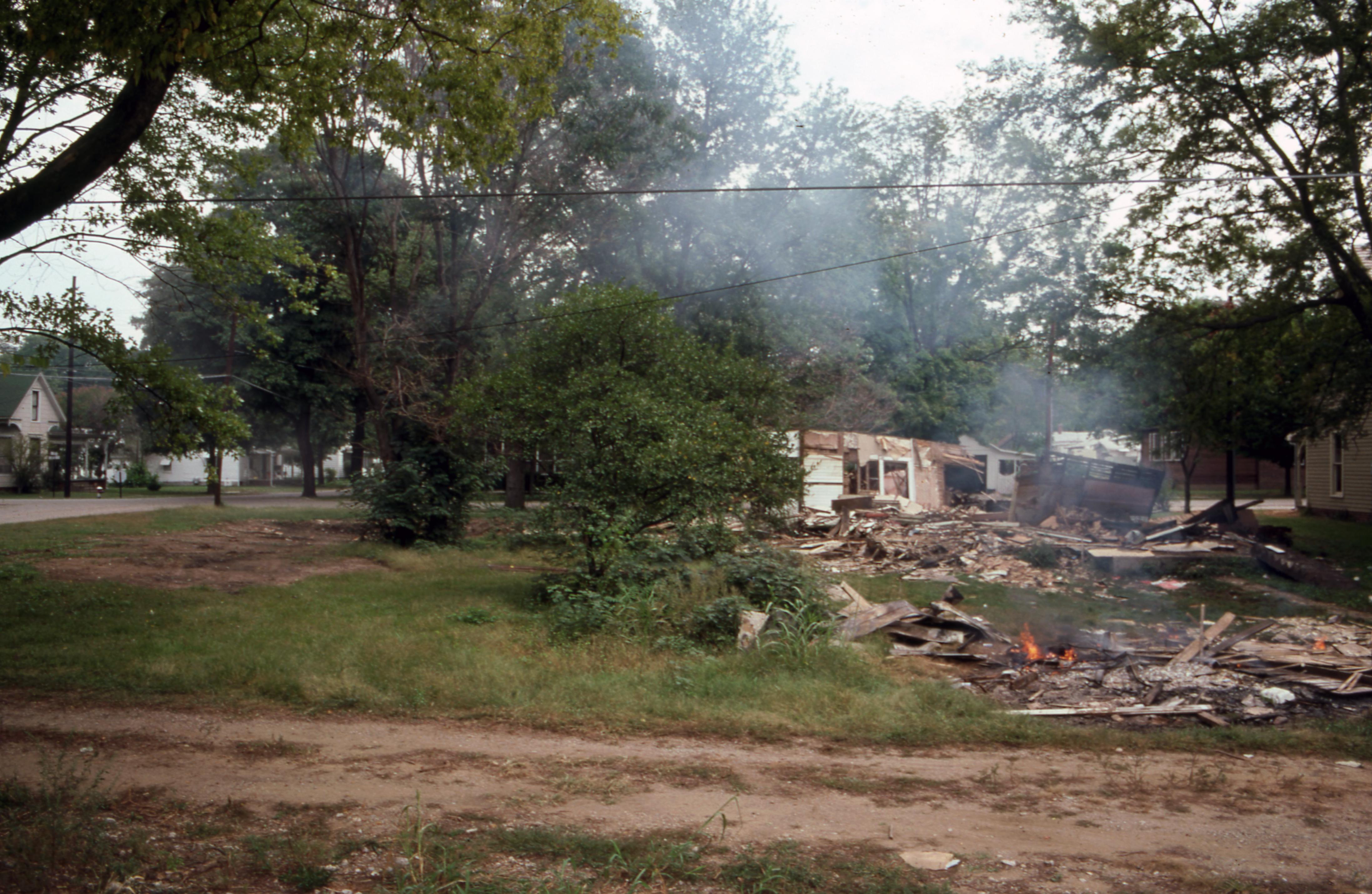 Streets: Arthur Street. This photo shows the houses just north of the Rhodes House in the process of being demolished.