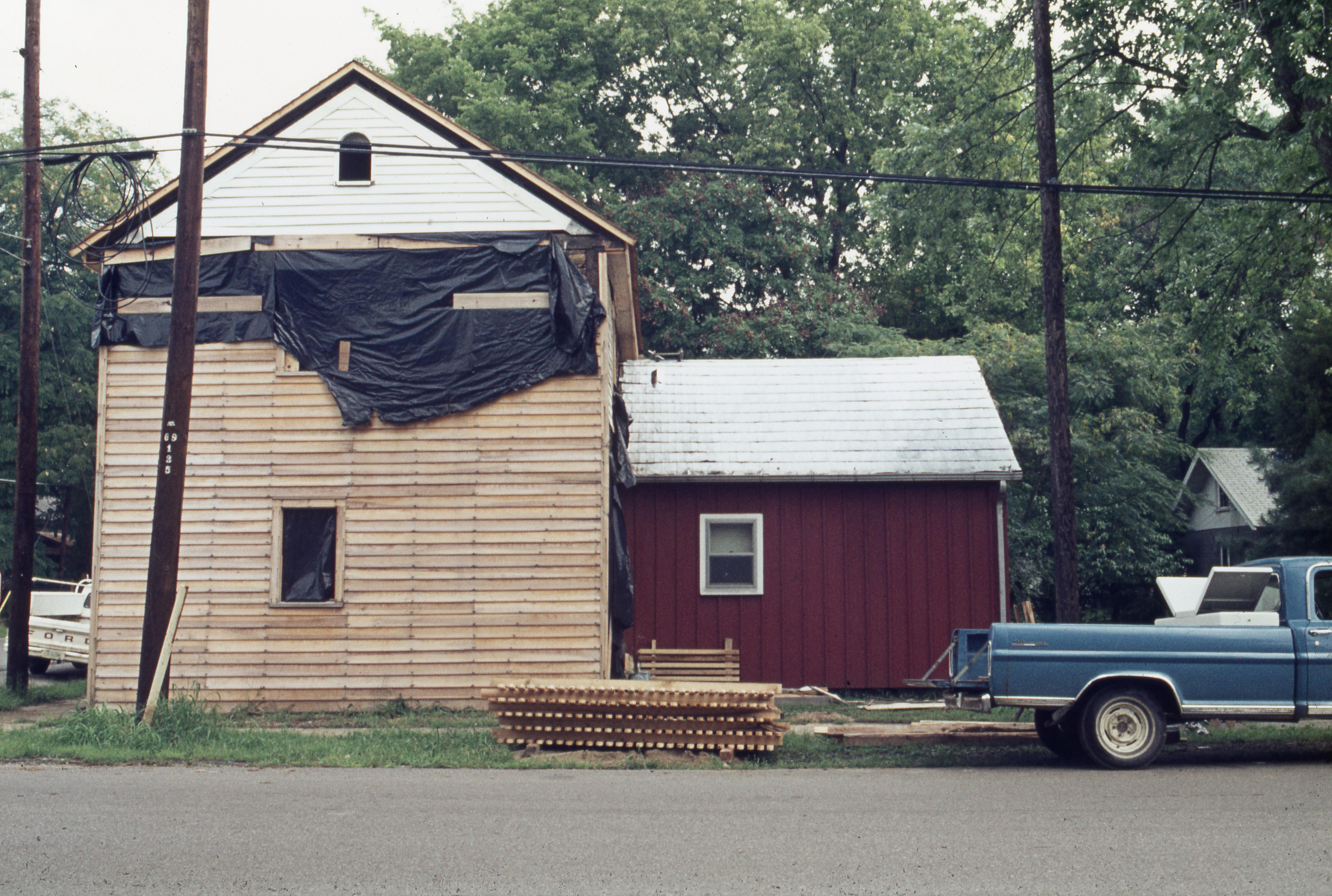 Autrieth House: This house is located at 605 Tavern Street and was constructed in 1855. This photo shows the west side of the house facing Brewery Street. A stack of fencing is in the foreground waiting to be installed along the west edge of the property.