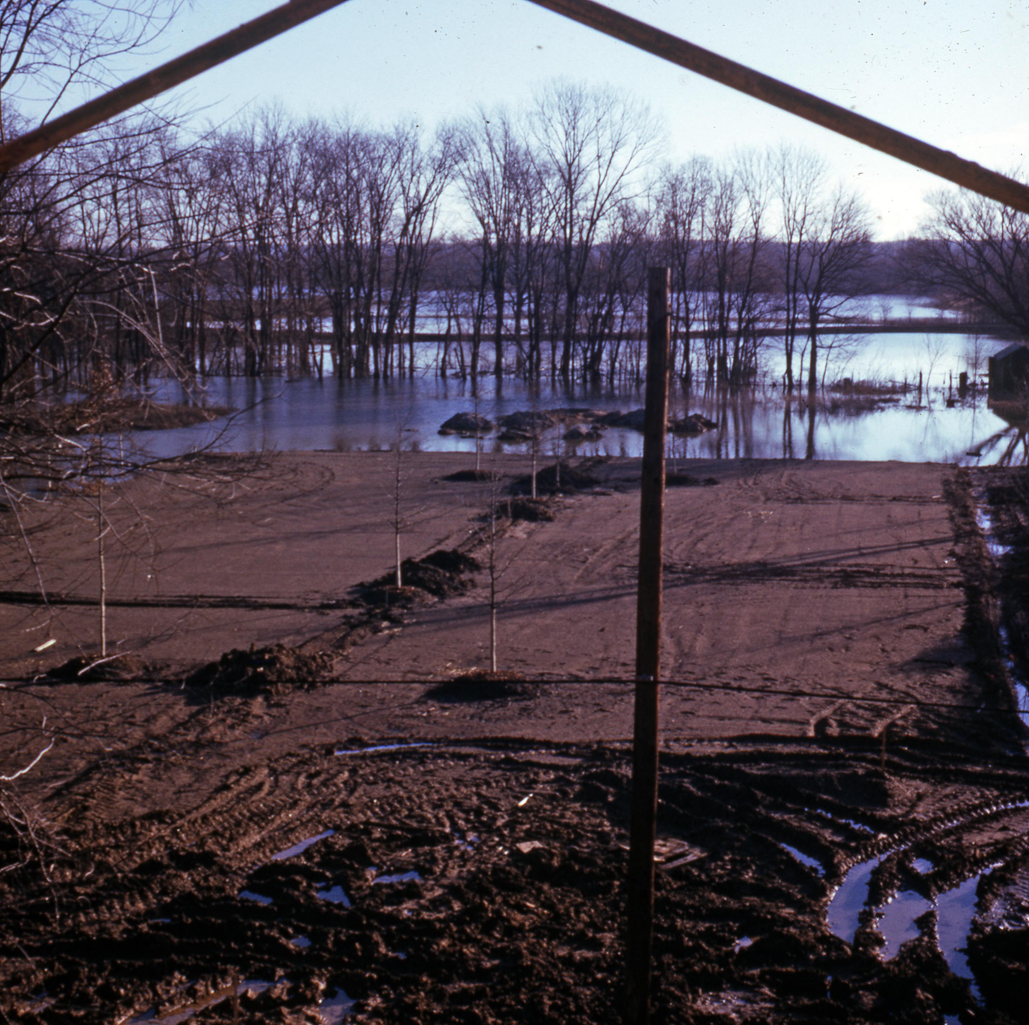 View of Pool site and construction at The New Harmony Inn and Conference Center located at 504 North Street, owned by Red Geranium Enterprises. This photo shows flood water at the construction site.
