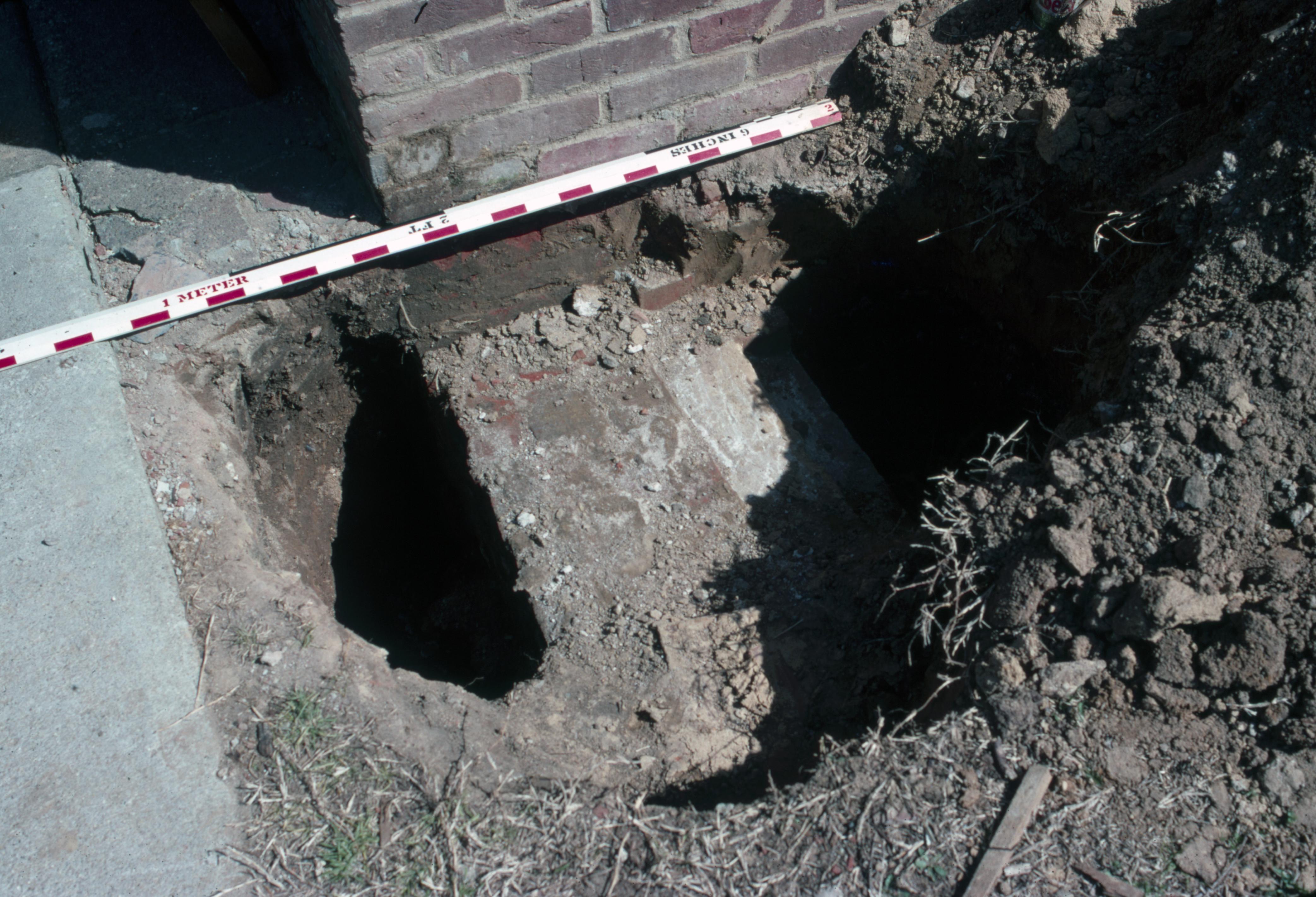 1830 Owen House: Located at 531 Tavern Street. A photo of part of the original foundation of the 1830 Owen House, on the west side, with a yard stick for scale.