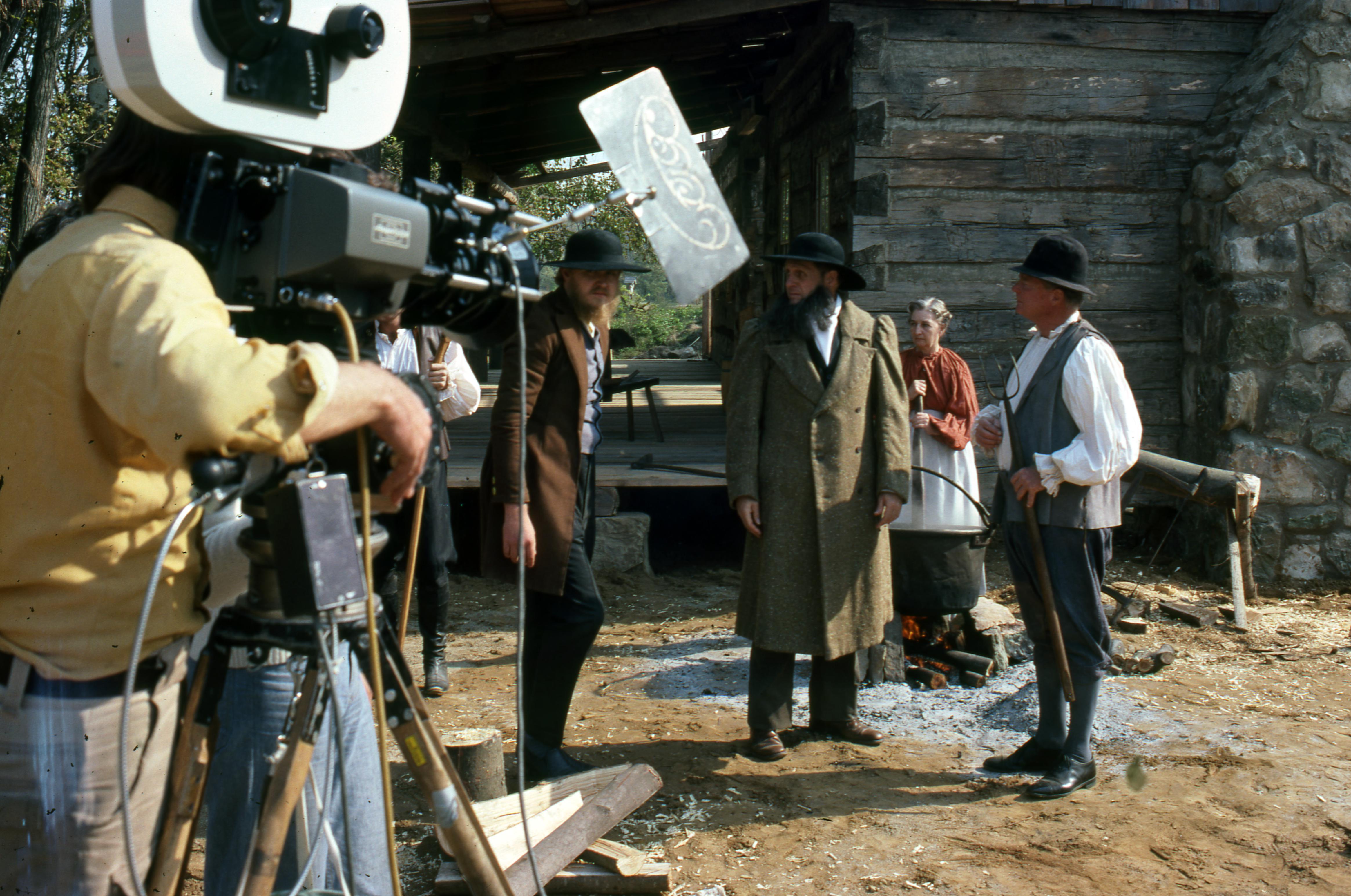 Filming at the Double Log Cabin for the New Harmony Experience which is an orientation film shown at The Atheneum/Visitor s Center. The film was produced by Historic New Harmony, Inc. and was shot in various locations around the town.