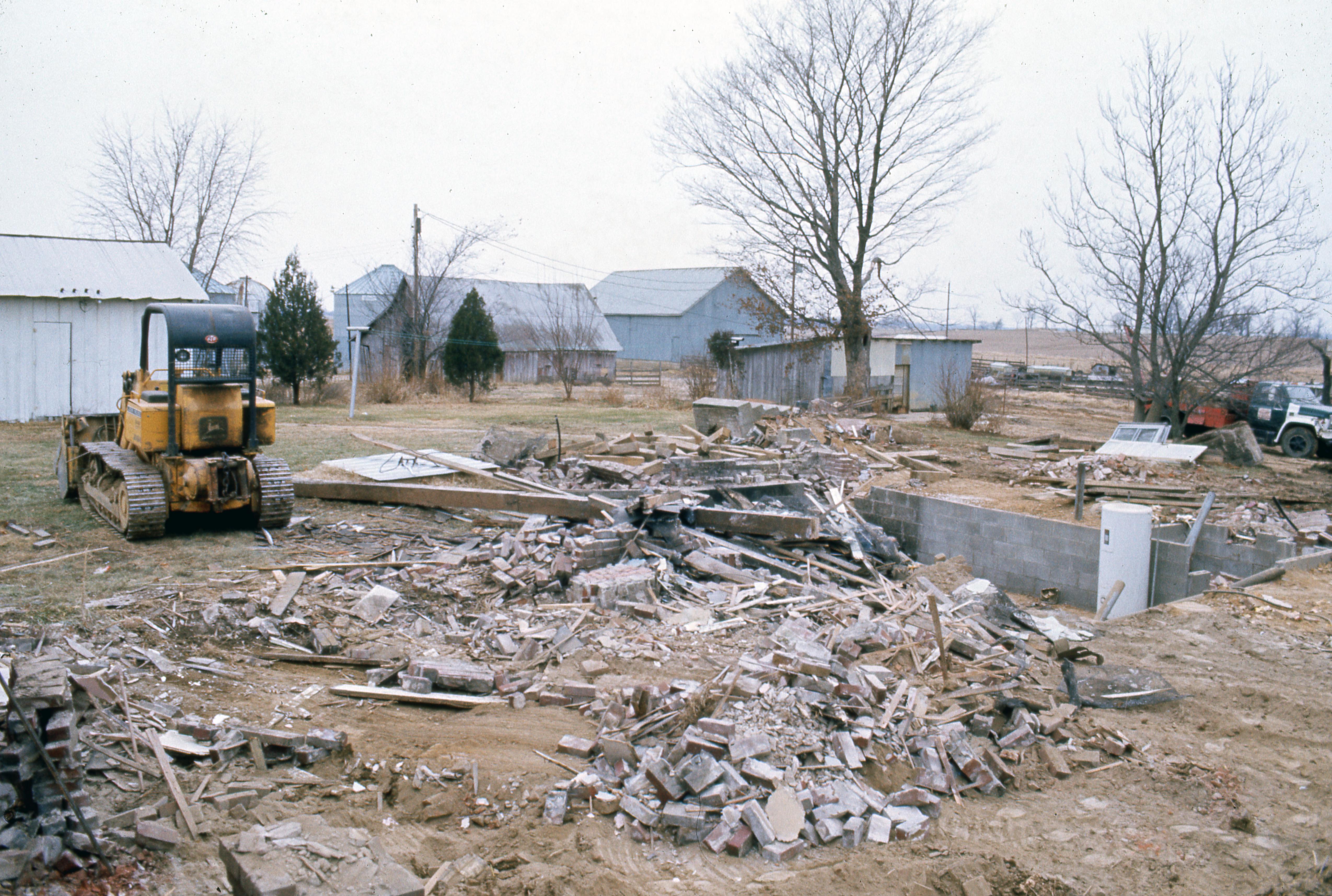 The Jaquess House: This is a photo of the Jaquess House, as it was before being dismantled, from which the parlor was taken, was moved from somewhere near Poseyville. It was then taken through a field to near the edge of a highway where it was dismantled. The parlor was then incorporated into the Owen House on the corner of Tavern and Brewery Streets in town block 6 E east.