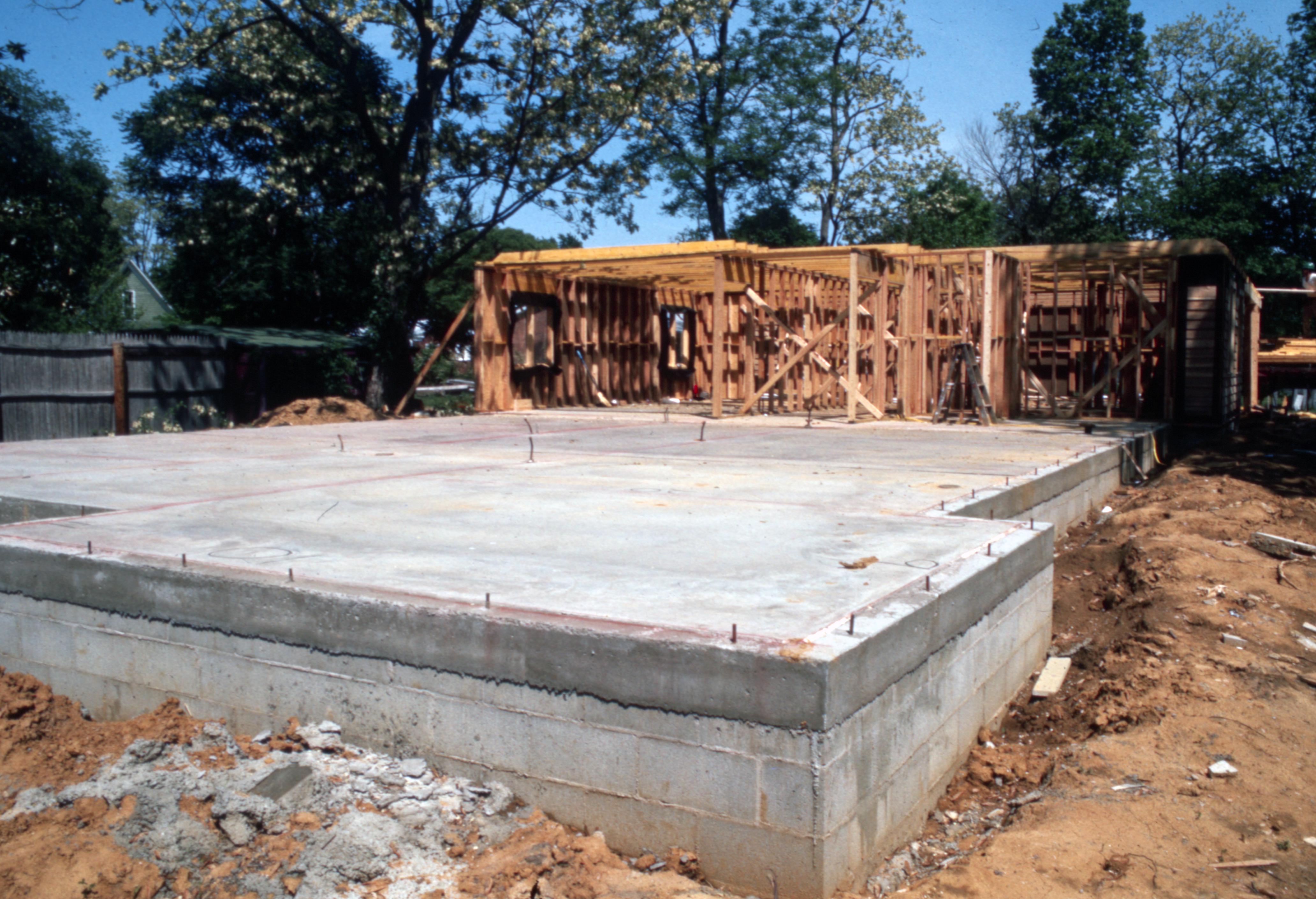 Tree of Life Clinic And Hospital Collection: This building was constructed and located at 510 South Street. This building has been demolished and is no longer present as of 2020. Workmen constructing the foundation and walls of the Tree of Life Clinic.