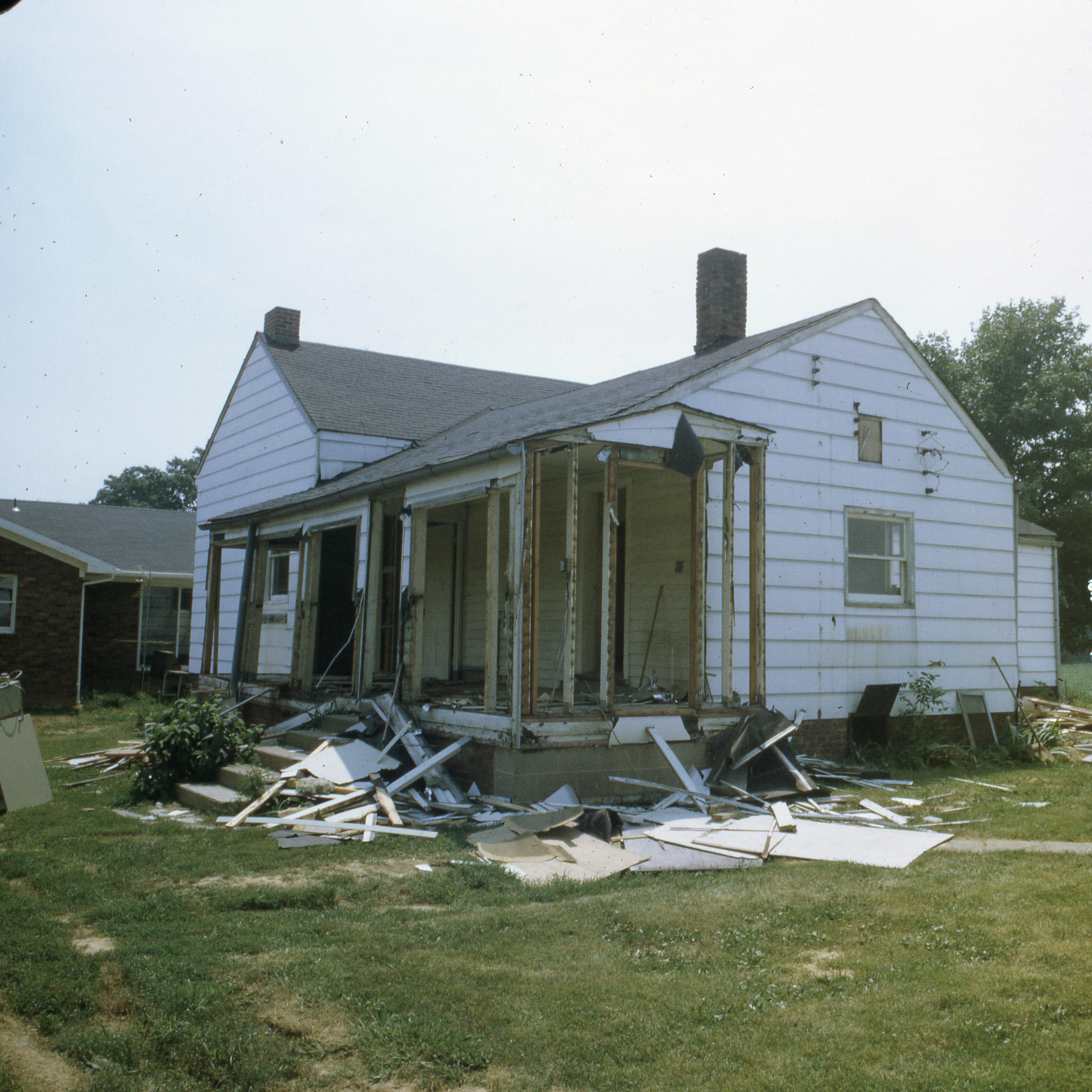 The Jaquess House: This is a photo of the Jaquess House, as it was before being dismantled, from which the parlor was taken, was moved from somewhere near Poseyville. It was then taken through a field to near the edge of a highway where it was dismantled. The parlor was then incorporated into the Owen House on the corner of Tavern and Brewery Streets in town block 6 E east.