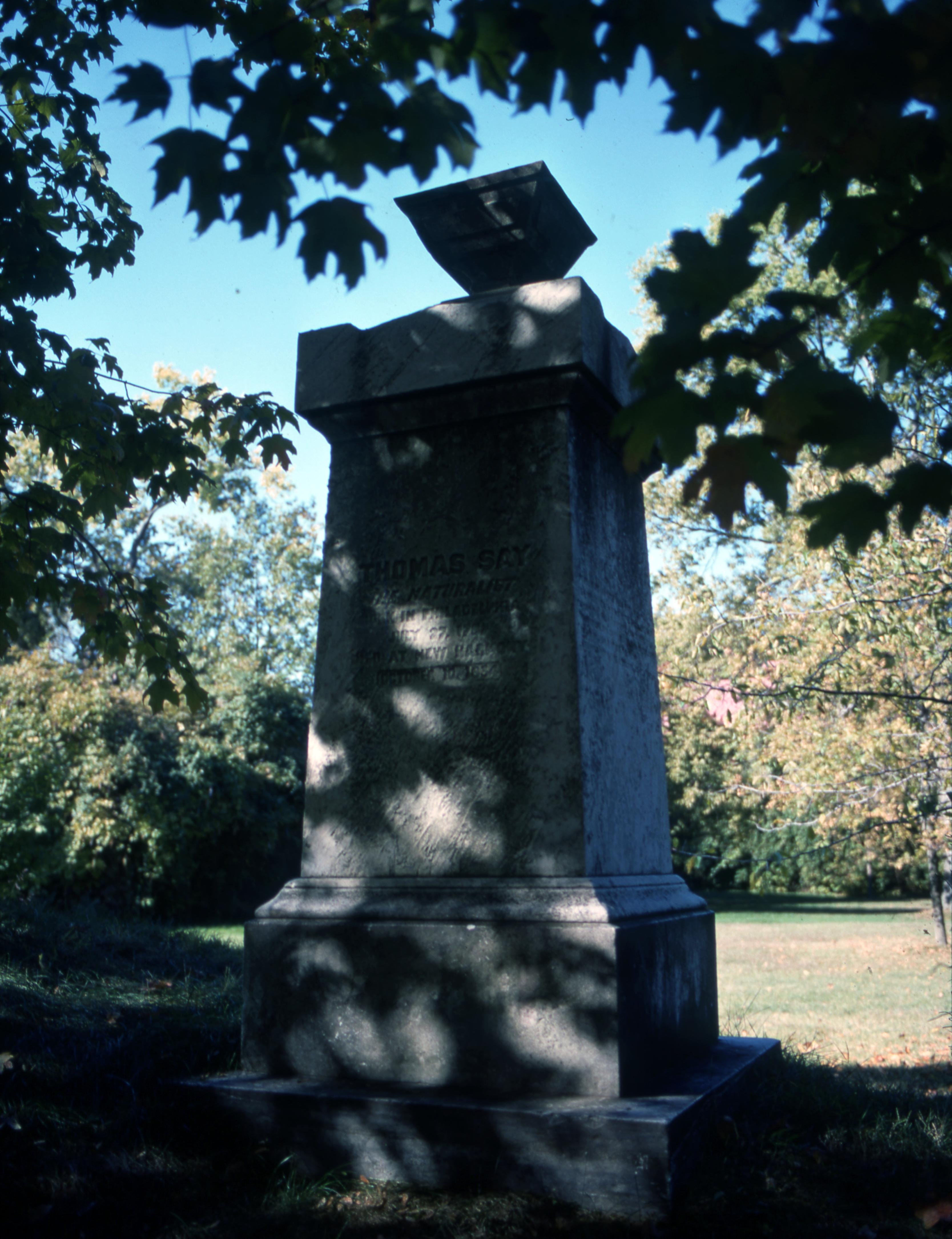 Maclure Mansion: Thomas Say, the naturalist, headstone monument. Born July 27, 1787 - Died October 10, 1834.