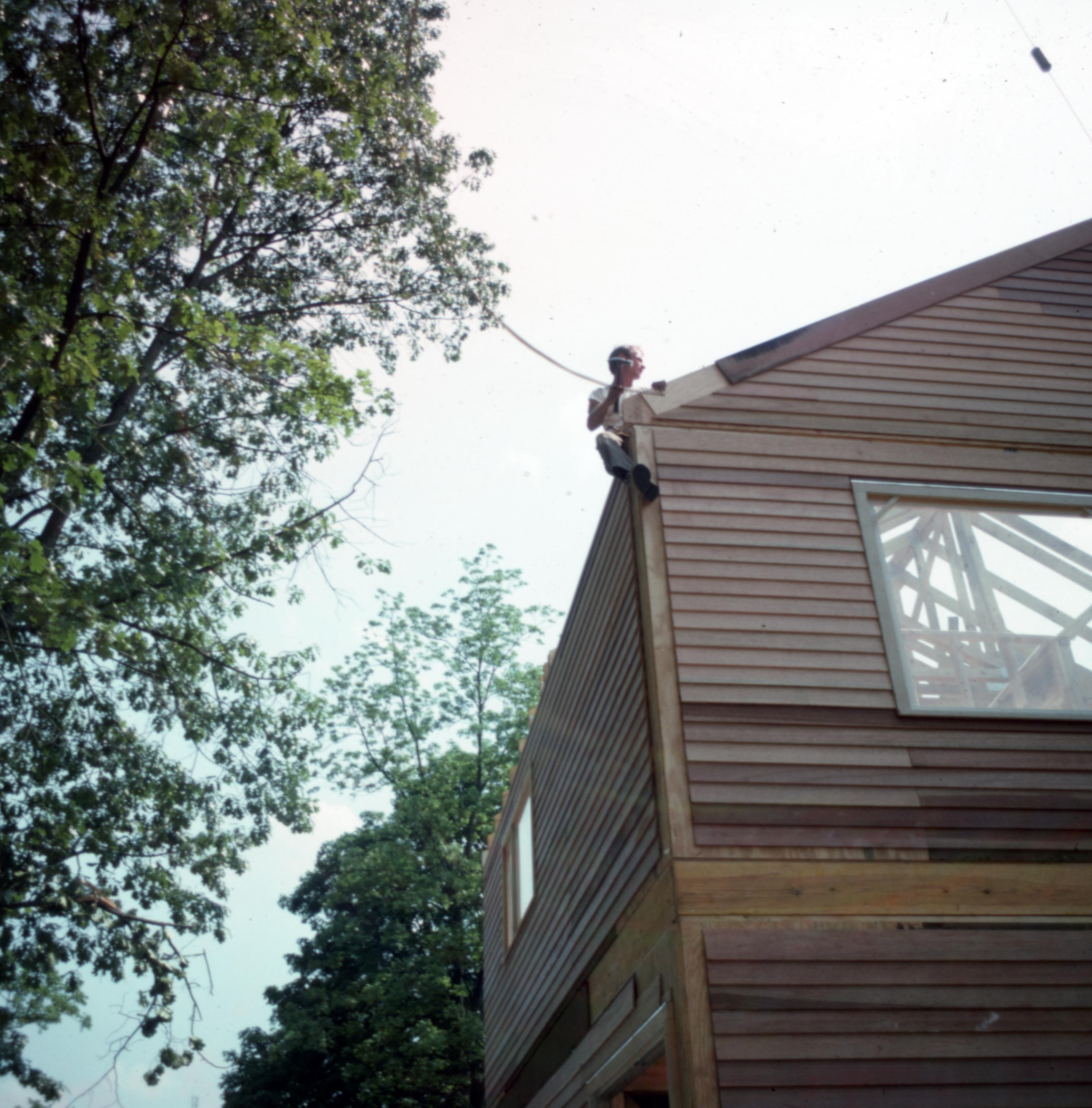 Lanark Development Collection: Construction of 820 Main Street New Harmony Indiana. Men working on the new construction. Construction of the second story.