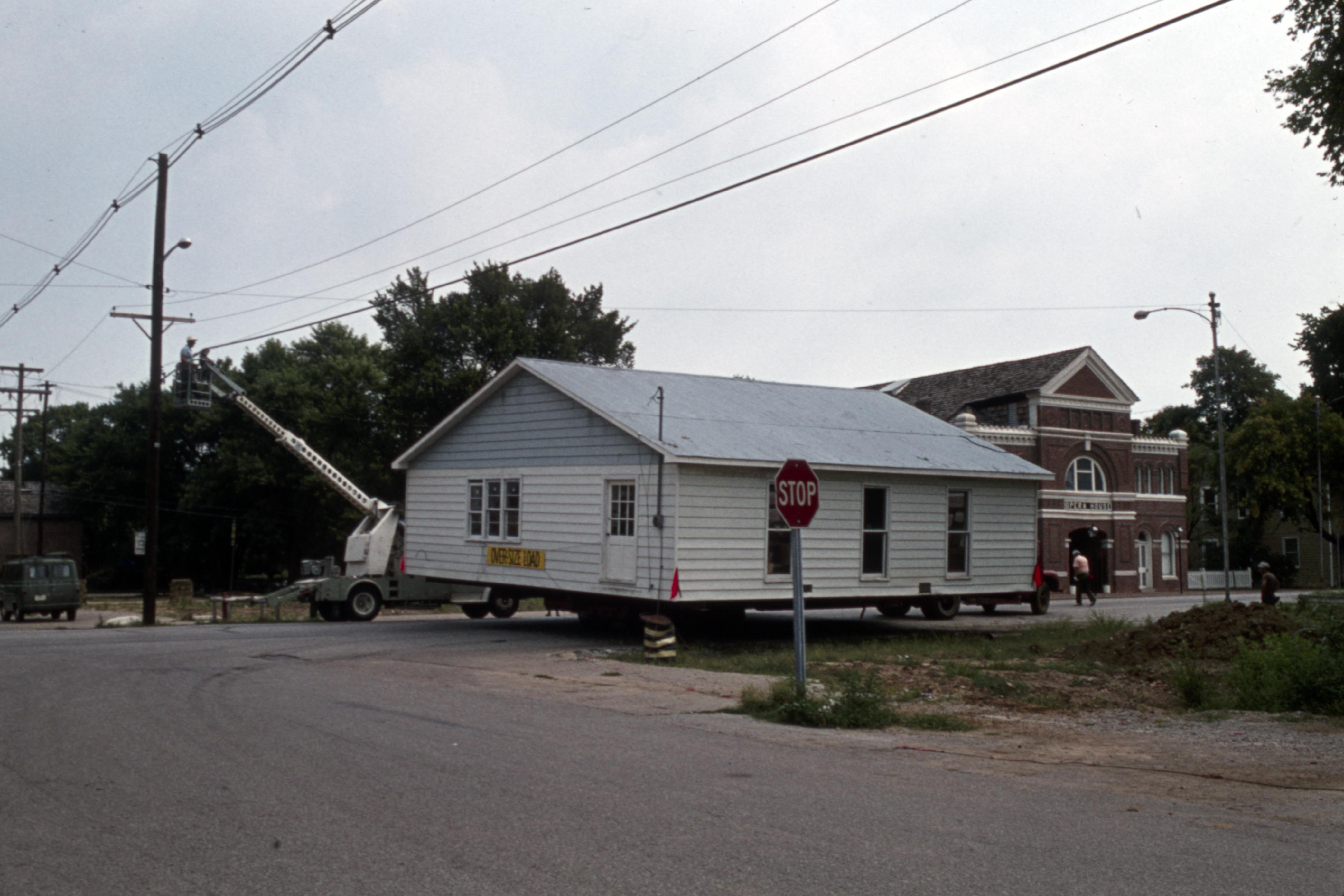 Smith Shop Move To 5K/S During The Move, Opera House In Background, Elmer Buchta Movers, One Block North Of The Posey County News 3rd Street New Harmony Indiana