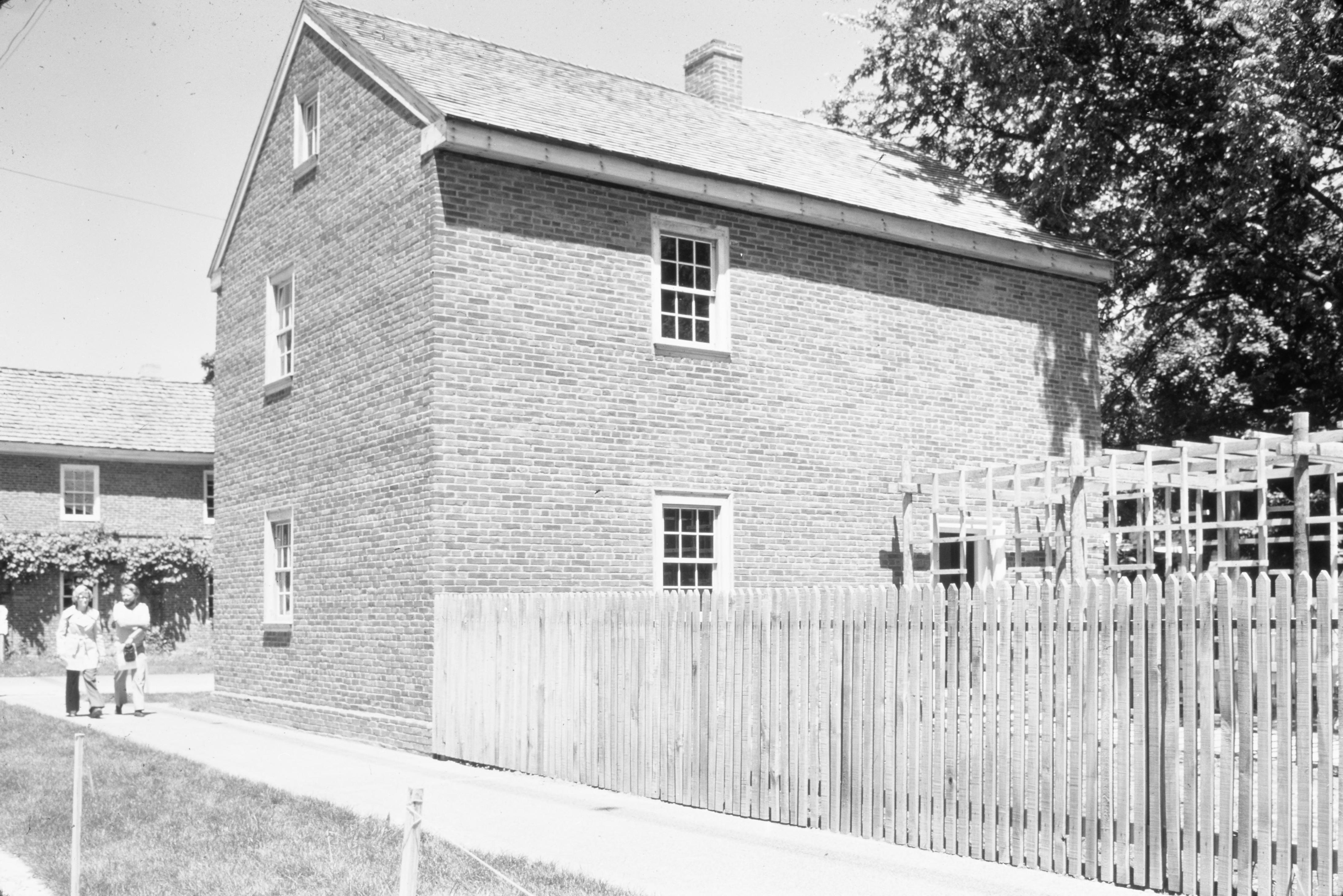 Transparencies and Negatives Collection: Historic photographs. This is a photo of the Wolf House, after it was relocated to the new plat on the southeast corner of Granary and Brewery Streets.