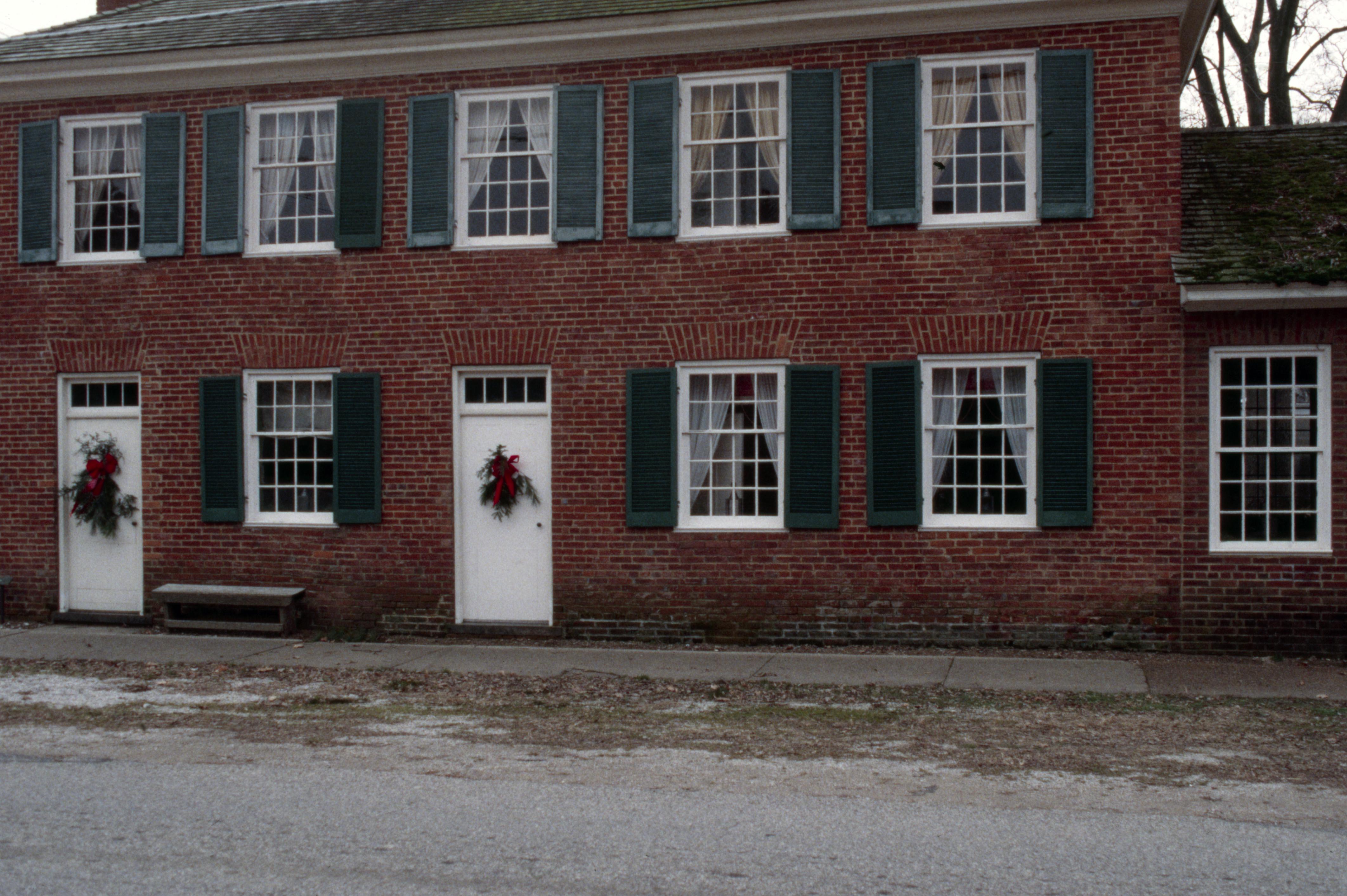 1830 Owen House: Located at 531 Tavern Street. The 1830 Owen House as decorated for Christmas. There is a sign posted by Historic New Harmony, on the east side of the house, stating this is Site 11 The 1830 Owen House.