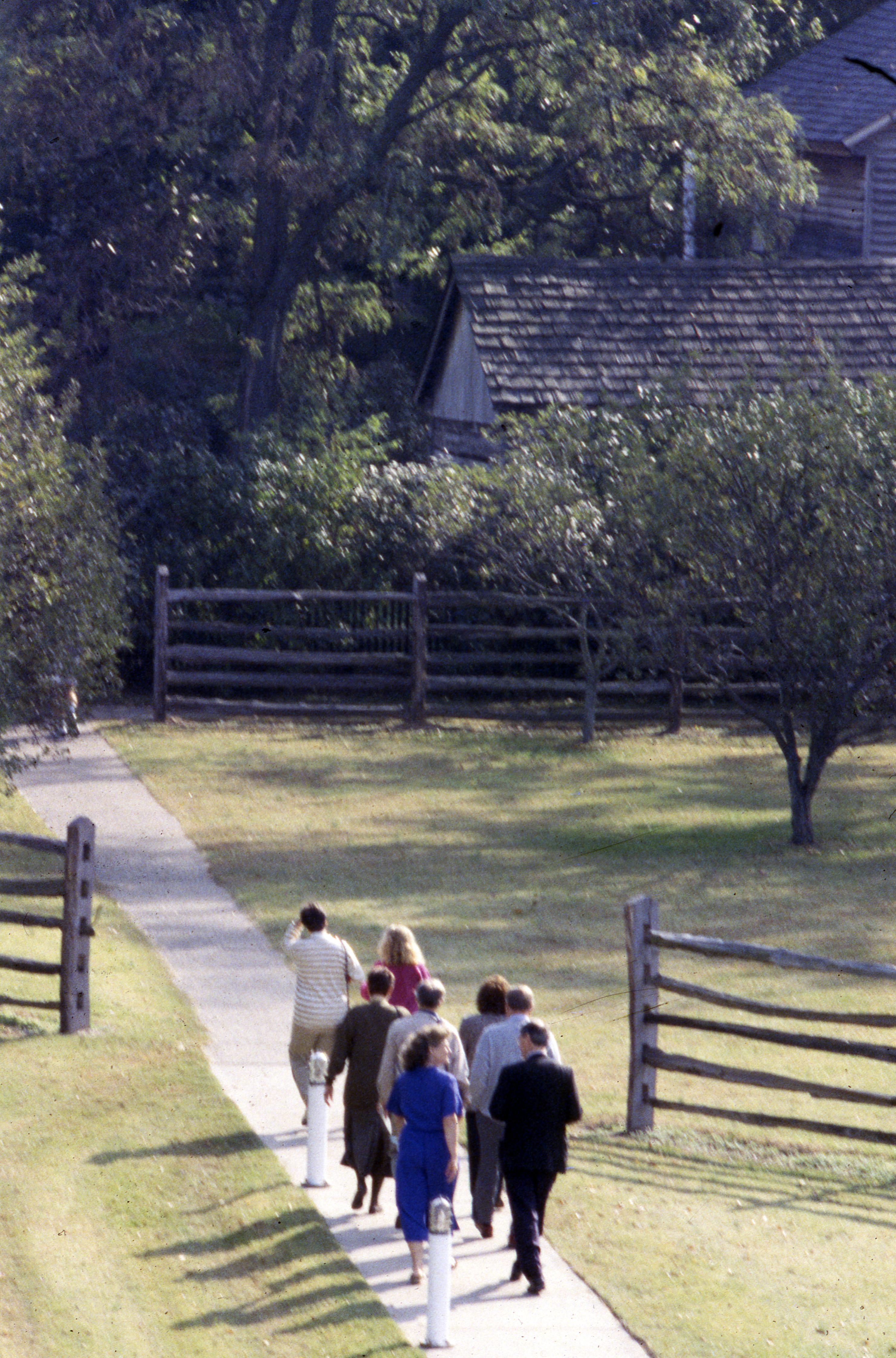 Looking east towards the Double Log Cabin and the Lenz House located at 324.