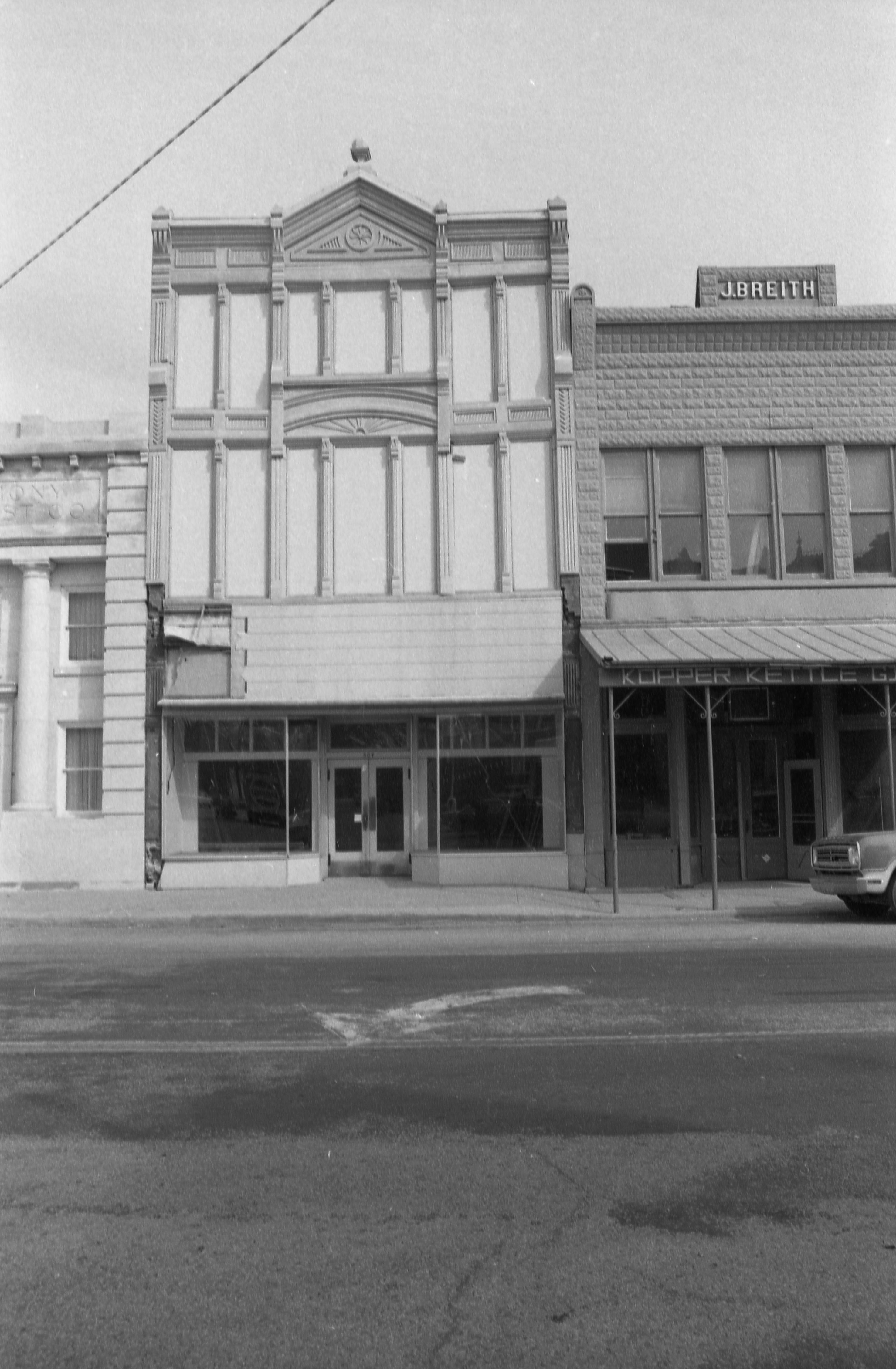 Transparencies and Negatives Collection: Historic photographs. This is a photo of the east side of Main Street between Church and Tavern. Photo was taken during the 1970s renovations and refurbishments.