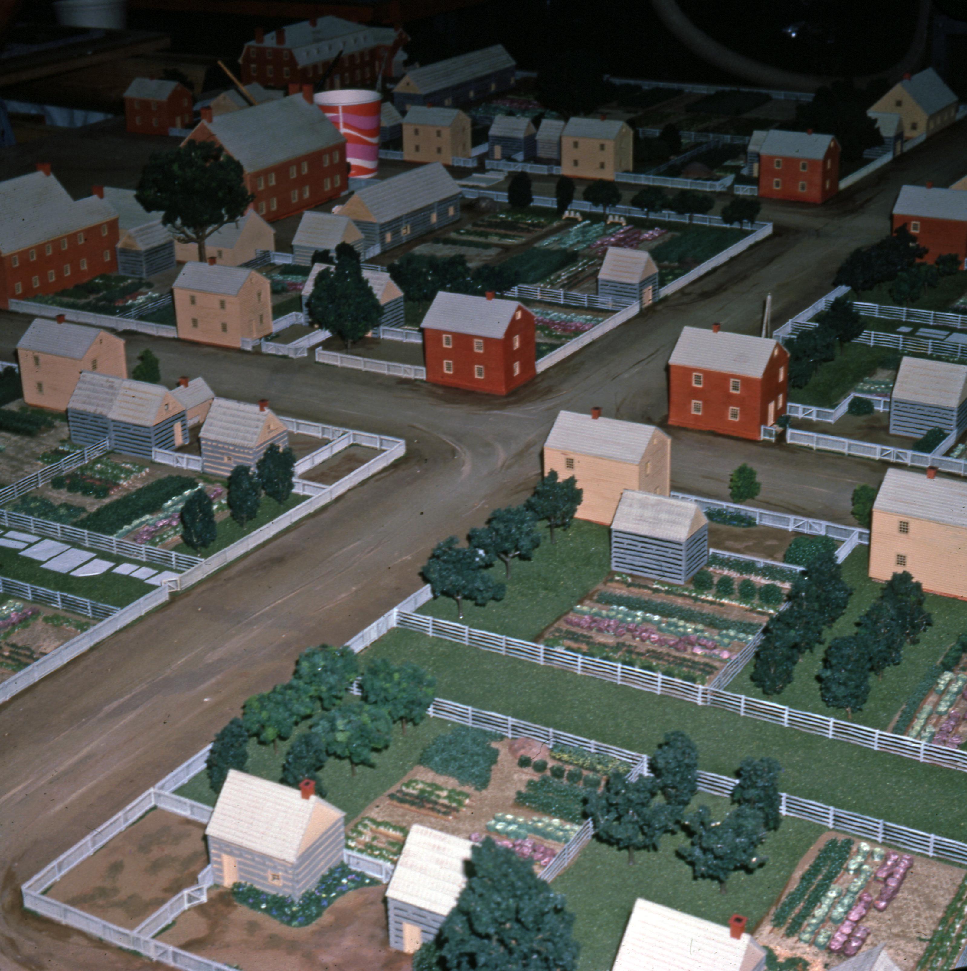 The town model being used to film scenes for the New Harmony Experience which is an orientation film shown at The Atheneum/Visitor�s Center. The film was produced by Historic New Harmony, Inc. and was shot in various locations around town.