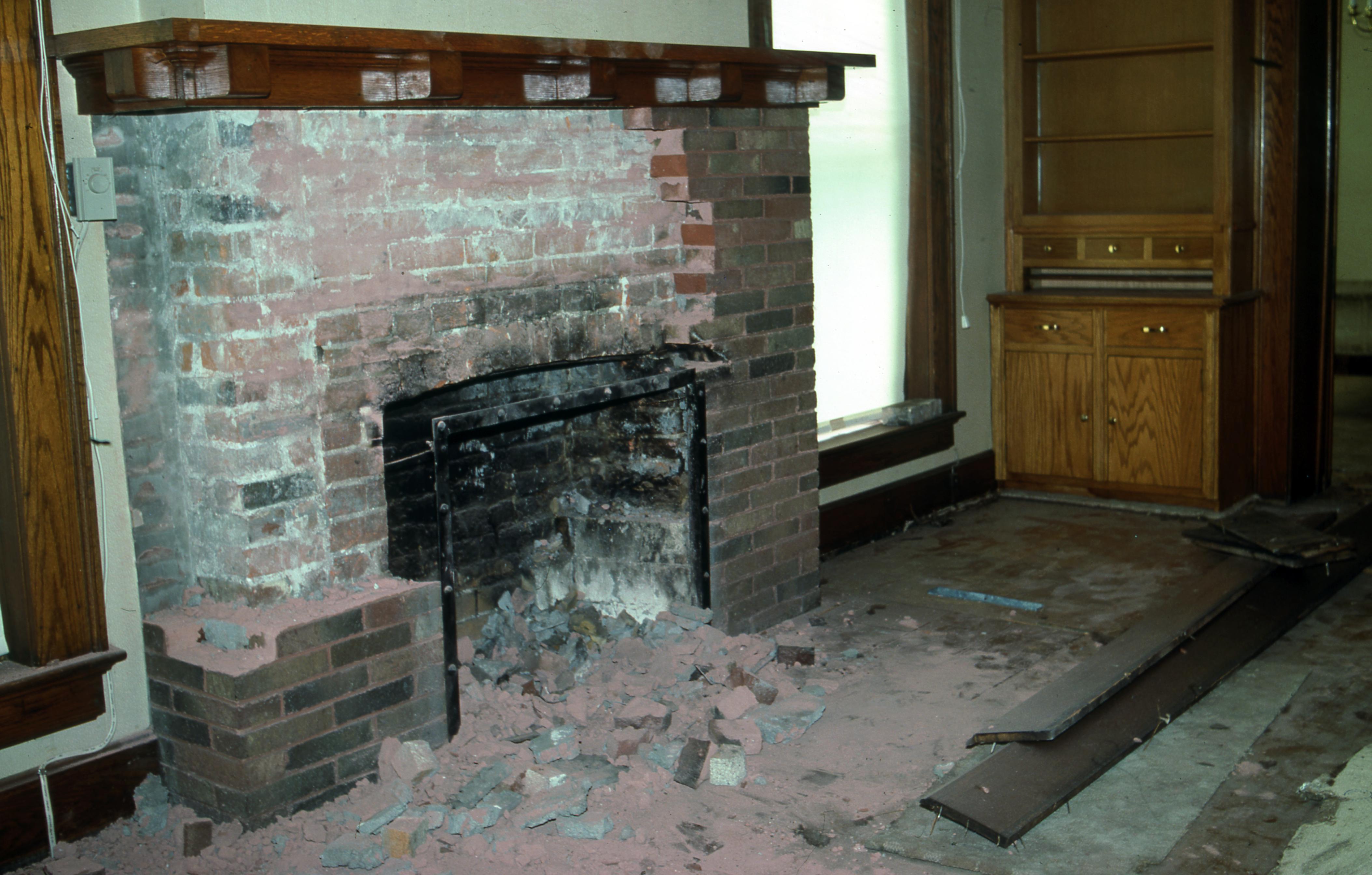 Schnee House: This photo is of the second Schnee home located at 603 West Street and was constructed in 1876. The first Schnee home was constructed during the Rappite occupation of the town, the Schnee brothers having moved to the town from the Quaker colony in Pennsylvania, and that house was located at 517 Tavern Street. The Gypsy Girl Livery Stable was later constructed behind that home. This is a fireplace as it was being restored from one of the rooms of the house.