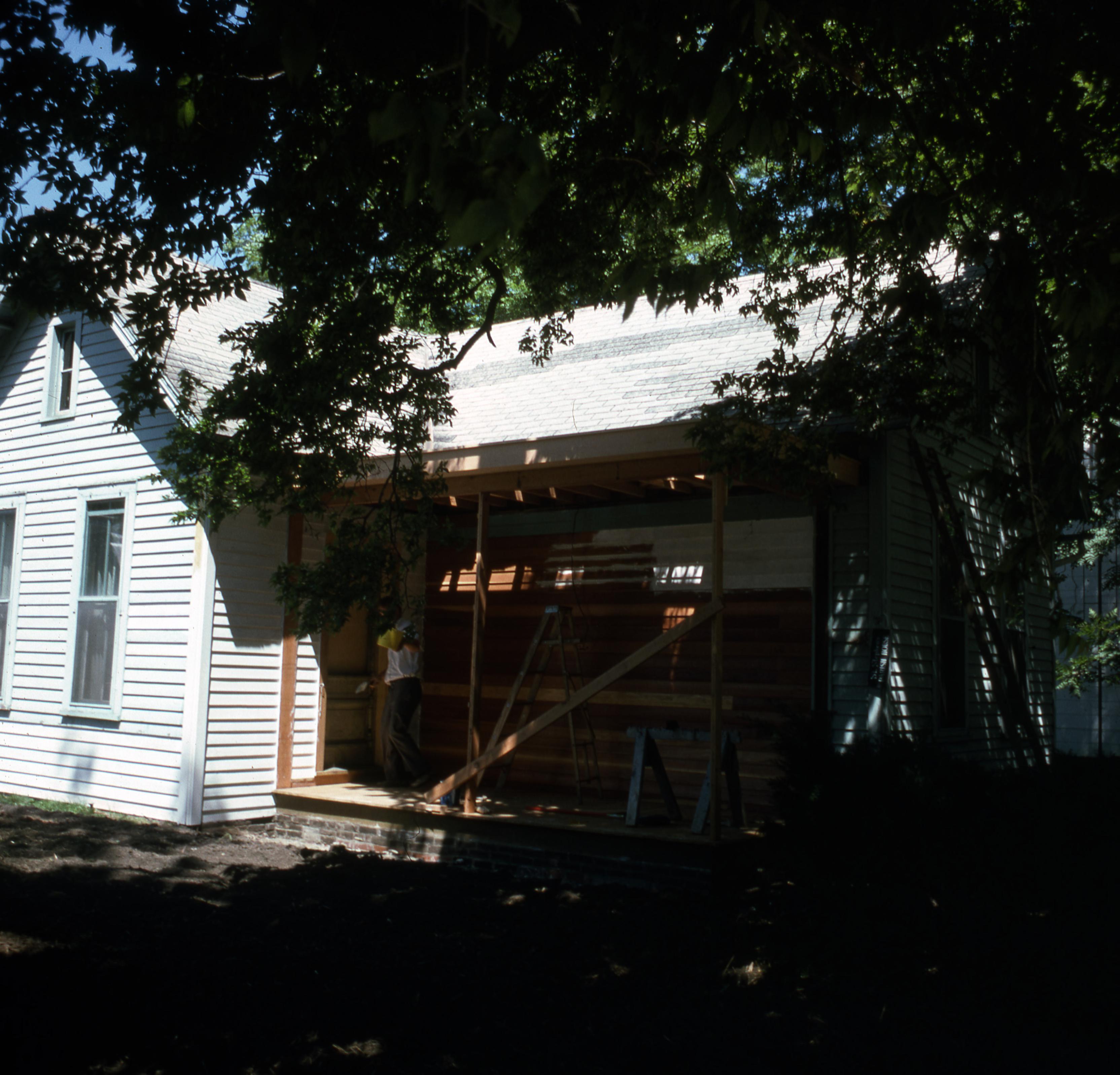 St. Stephen's Episcopal Church: The church was first organized in 1841 and in 1843 the west wing of the old Rappite church was given for use by the Episcopal�s by Alexander and Anne Maclure. At this time the old burial ground was also given to the church, which was bought back by the Rappites in 1846. Then in 1850 the Episcopal�s sold the west wing of the old Rappite Church for $1000 and in 1854 St. Stephen�s Church was constructed, the North Street location where the Lenz House now resides.1888 saw the construction of a new belfry add to the church to accommodate the new bell. In 1911 the new church was built, and an addition was made to it in 1927. The church is still present as of 2022. This is a photo of the parish house under renovations.