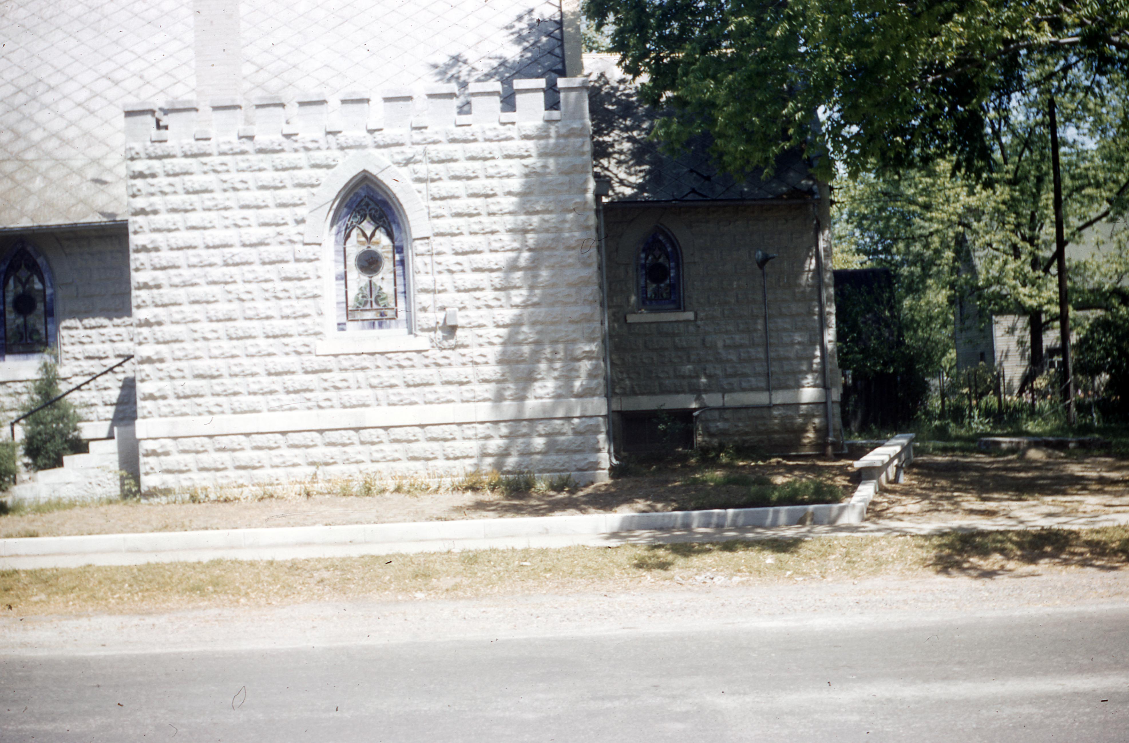 St. Stephen's Episcopal Church: The church was first organized in 1841 and in 1843 the west wing of the old Rappite church was given for use by the Episcopal�s by Alexander and Anne Maclure. At this time the old burial ground was also given to the church, which was bought back by the Rappites in 1846. Then in 1850 the Episcopal�s sold the west wing of the old Rappite Church for $1000 and in 1854 St. Stephen�s Church was constructed, the North Street location where the Lenz House now resides.1888 saw the construction of a new belfry add to the church to accommodate the new bell. In 1911 the new church was built, and an addition was made to it in 1927. The church is still present as of 2022. This photo shows the yard behind the church before renovations were made.