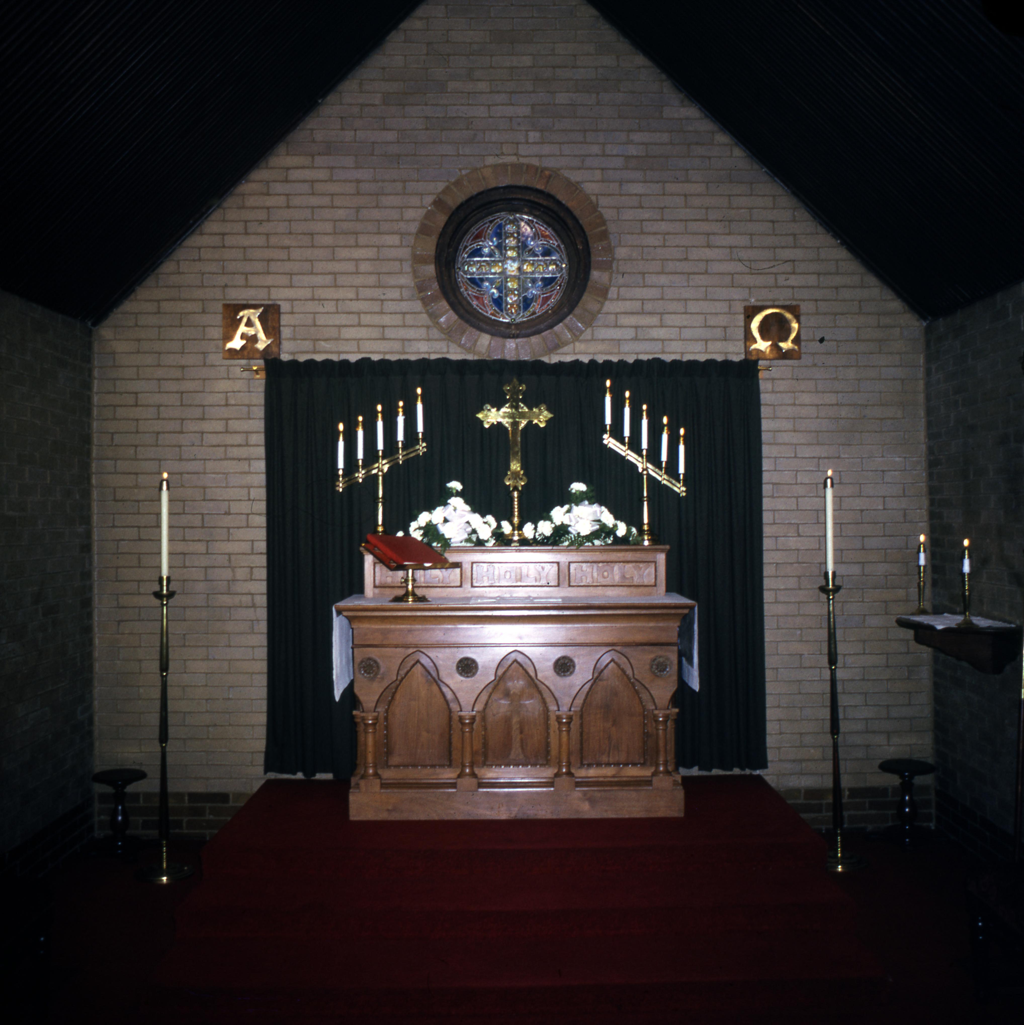 St. Stephen's Episcopal Church: The church was first organized in 1841 and in 1843 the west wing of the old Rappite church was given for use by the Episcopal�s by Alexander and Anne Maclure. At this time the old burial ground was also given to the church, which was bought back by the Rappites in 1846. Then in 1850 the Episcopal�s sold the west wing of the old Rappite Church for $1000 and in 1854 St. Stephen�s Church was constructed, the North Street location where the Lenz House now resides.1888 saw the construction of a new belfry add to the church to accommodate the new bell. In 1911 the new church was built, and an addition was made to it in 1927. The church is still present as of 2022. This photo shows the inside of the church.