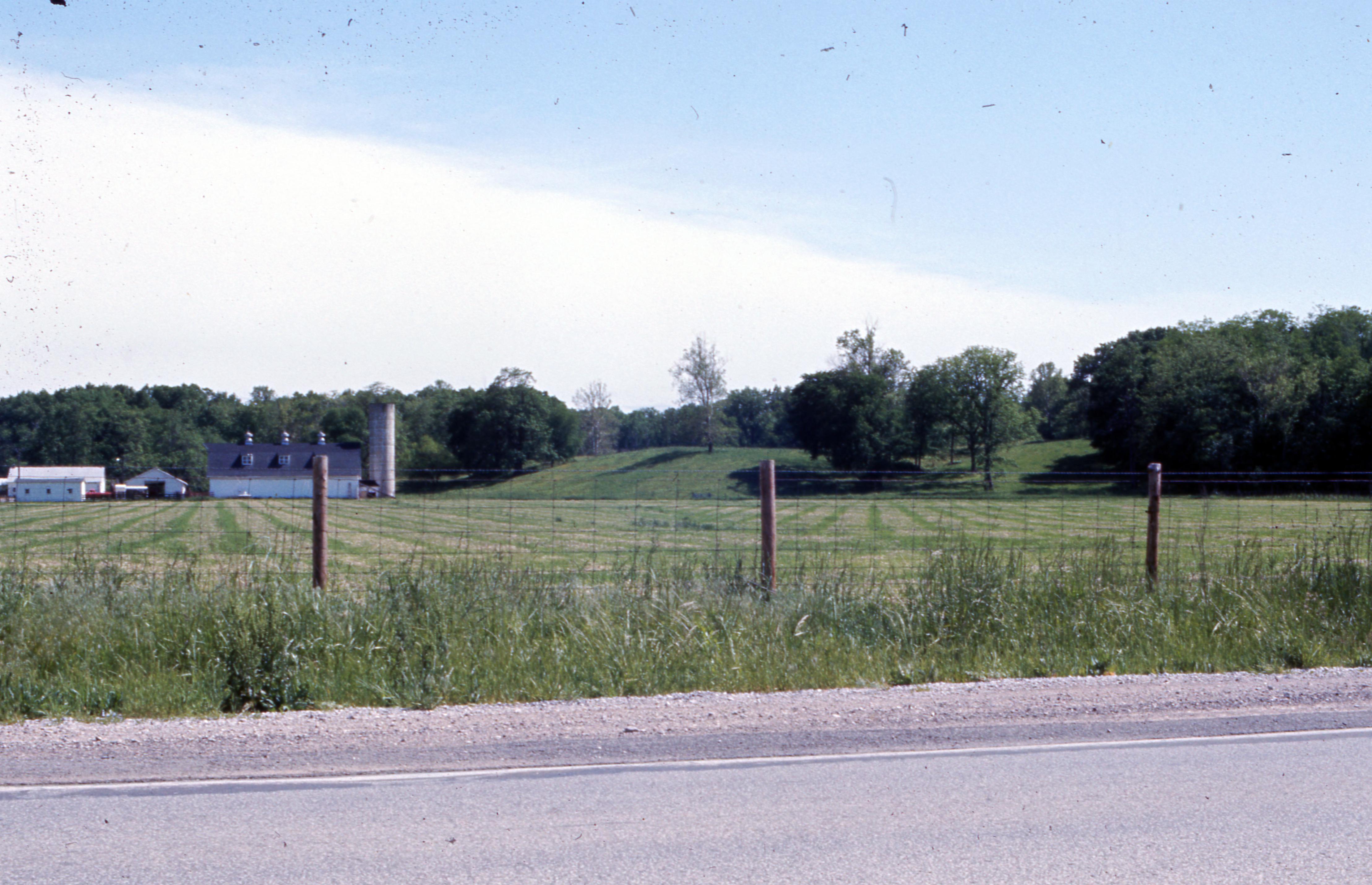 Pote Farm: The Pote farm lies just east of the Cooper Farm on Highway 69/66. The large barn with the three cupolas no longer stands, however the silo and the three smaller buildings to the left of the large barn are still present as of (2019). This farm can also be seen in the aerial view UA58 - 11474. This photo of the farm, from across the field, was taken facing south from Highway 69.