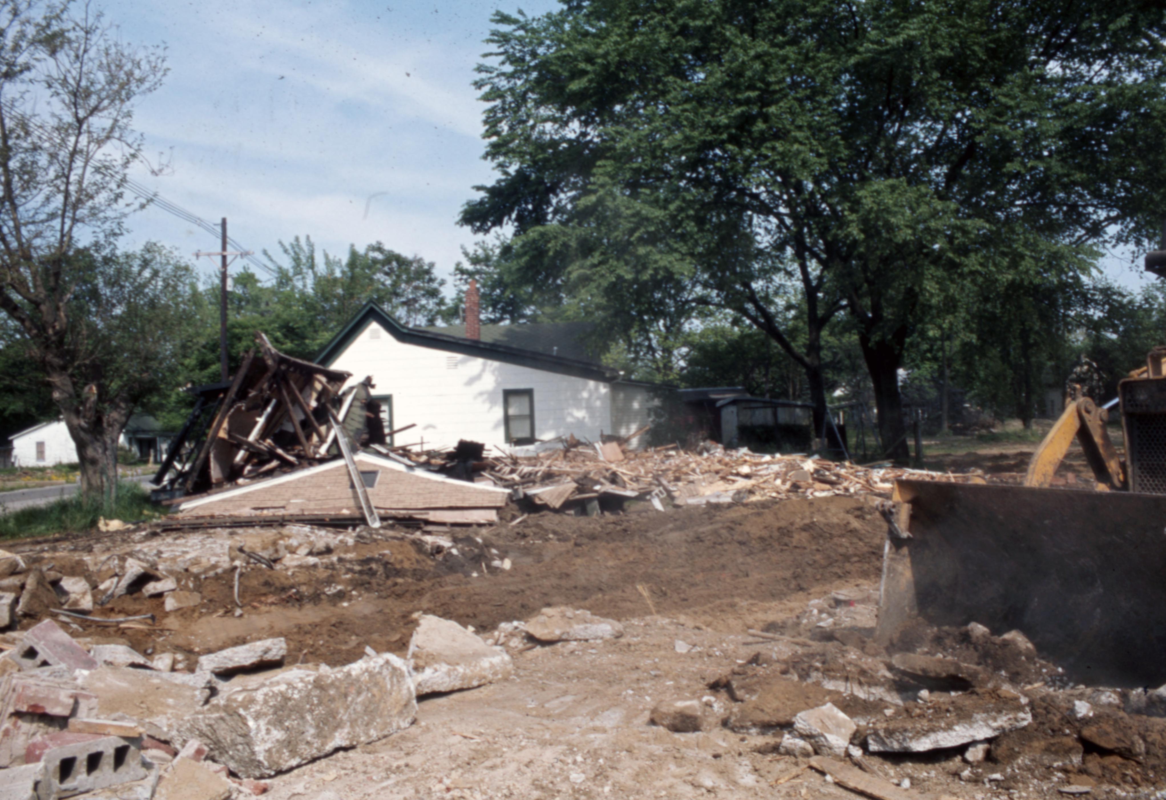 Lanark Development Collection: Buildings which were demolished during the construction of 820 Main Street New Harmony Indiana. Demolition of the houses facing South Street.