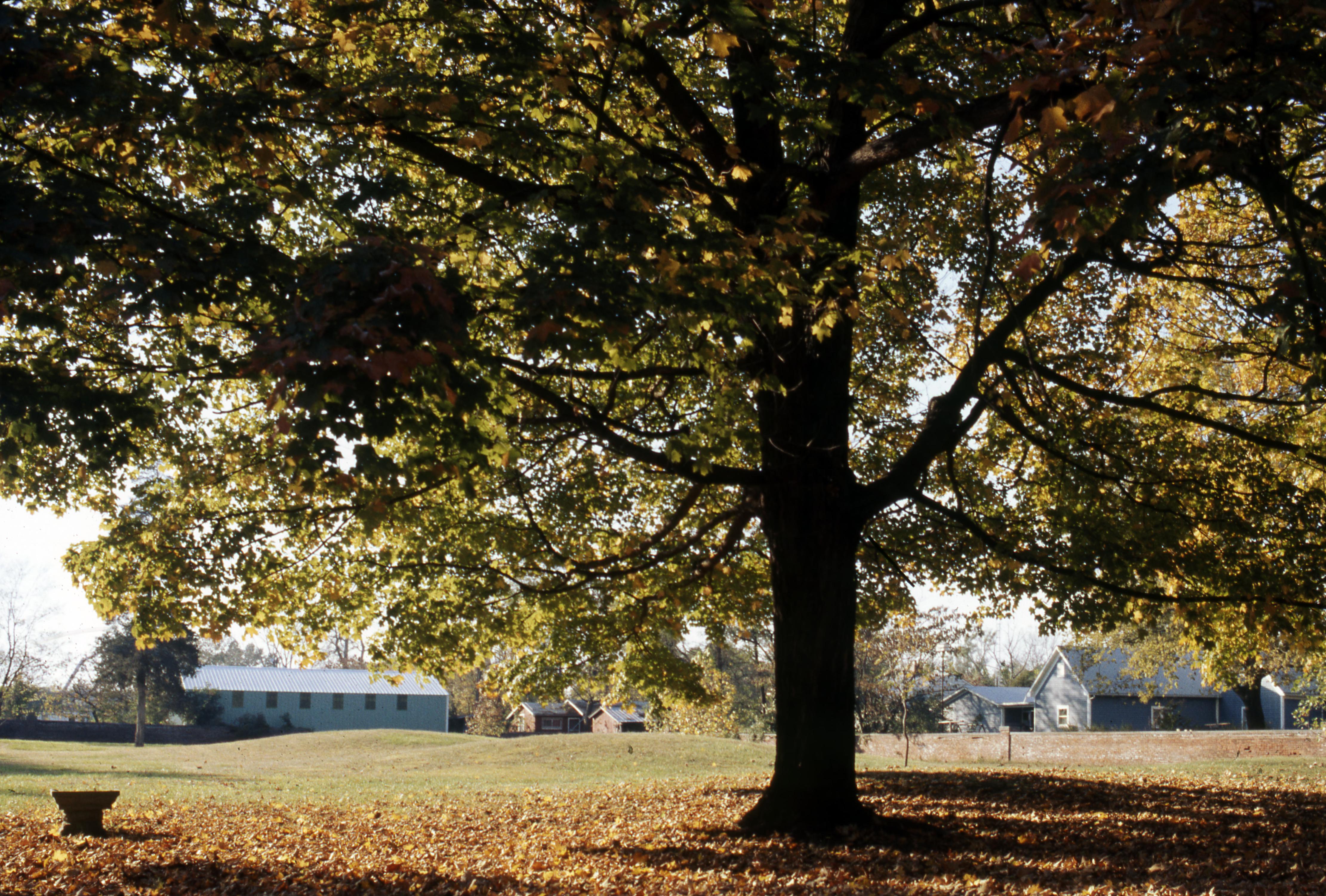 The Harmonist Cemetery located at the end of Granary and West Street. The cemetery was originally located in part of the Harmonist orchard and was fenced in with a brick wall in 1874. Located within the Harmonist walls are at least 20 Middle Woodland Period mounds most likely of the Hopewell people. The property is maintained by the Indiana State Museum and Historic Sites.