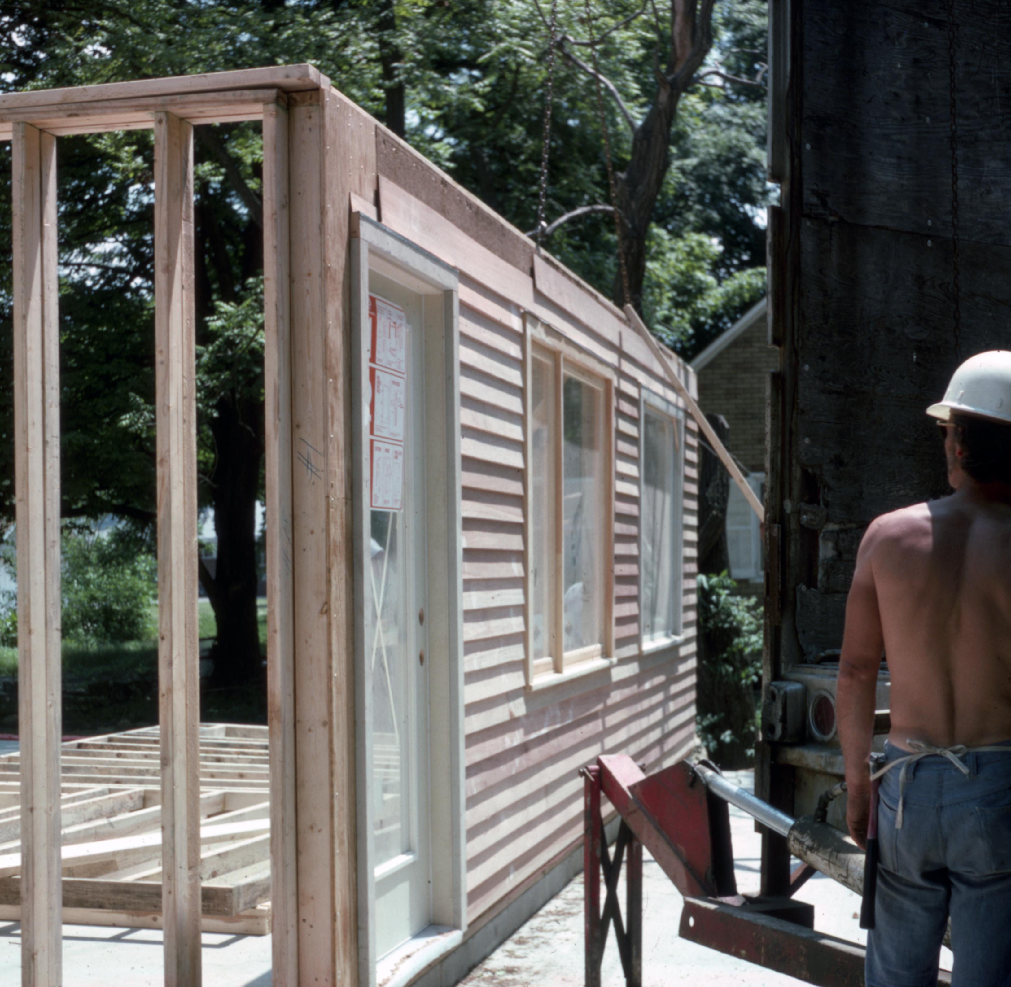 Lanark Development Collection: Construction of 820 Main Street New Harmony Indiana. Men working on the new construction.