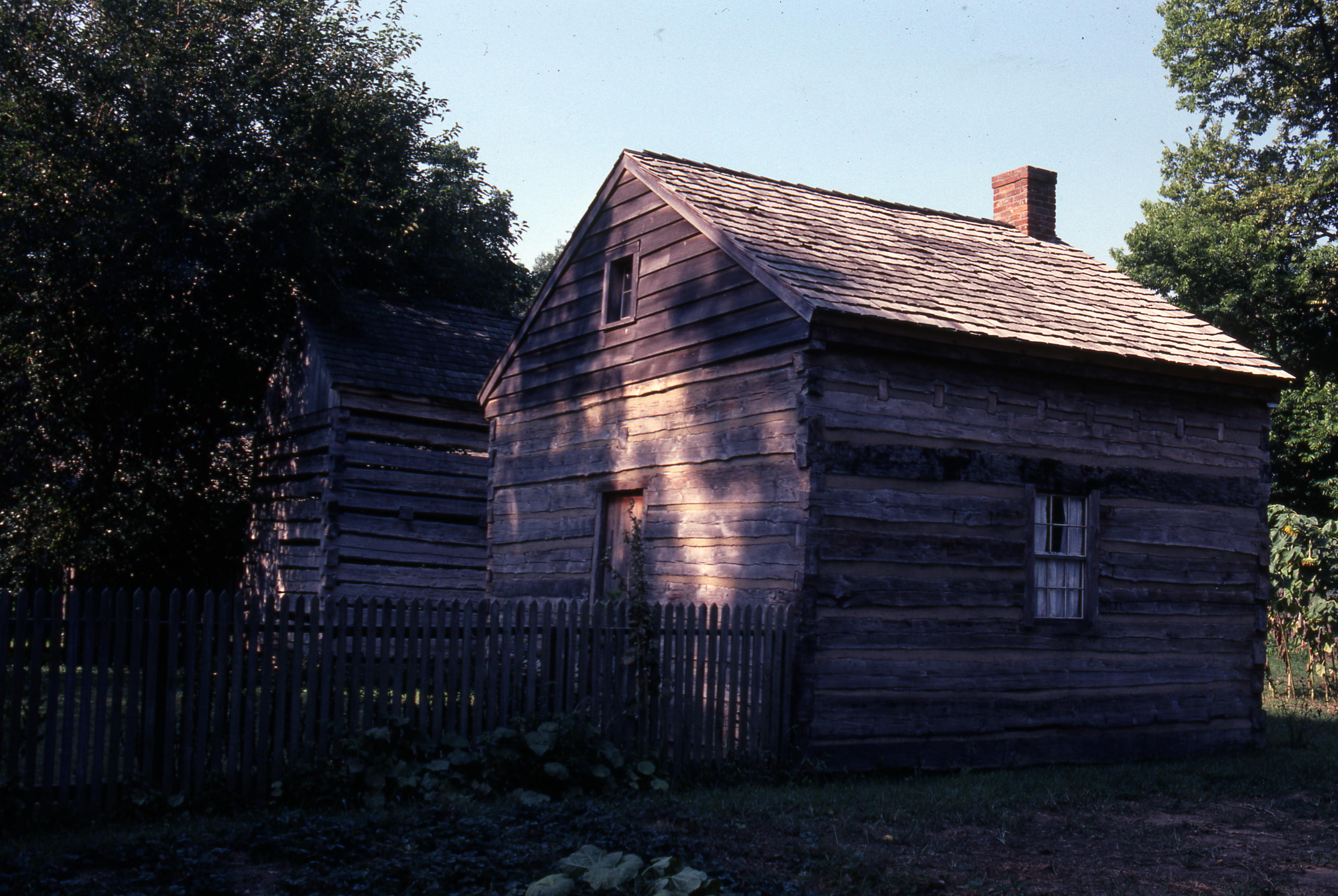 The West Street Log Cabins located at 301 West Street, New Harmony, Indiana. The logs that were used to reconstruct the West Street Log cabins came from the John Spencer log house in Crossville, Illinois.
