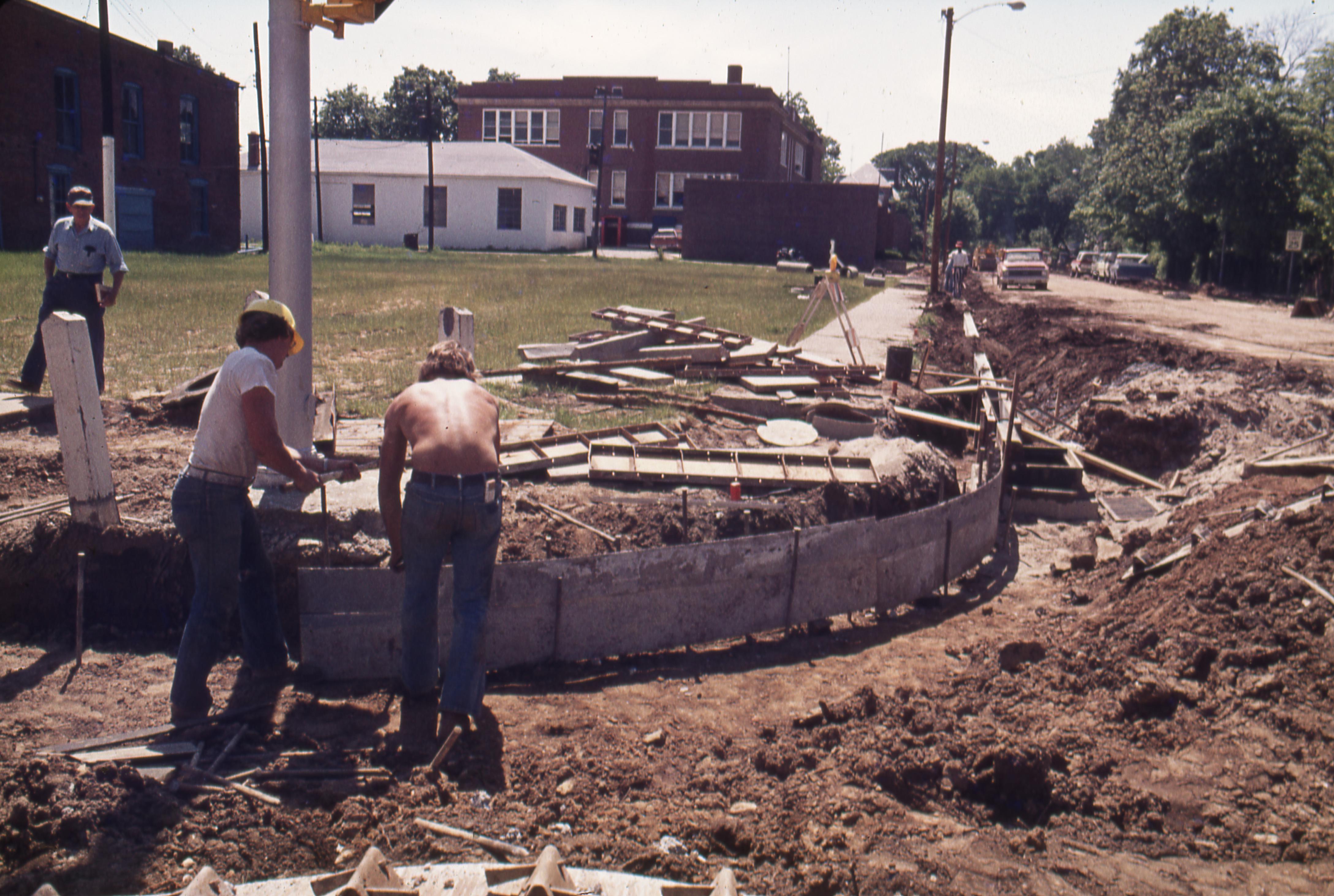 Streets: Church Street this is a photo of the new curb being poured at the corner with Main.