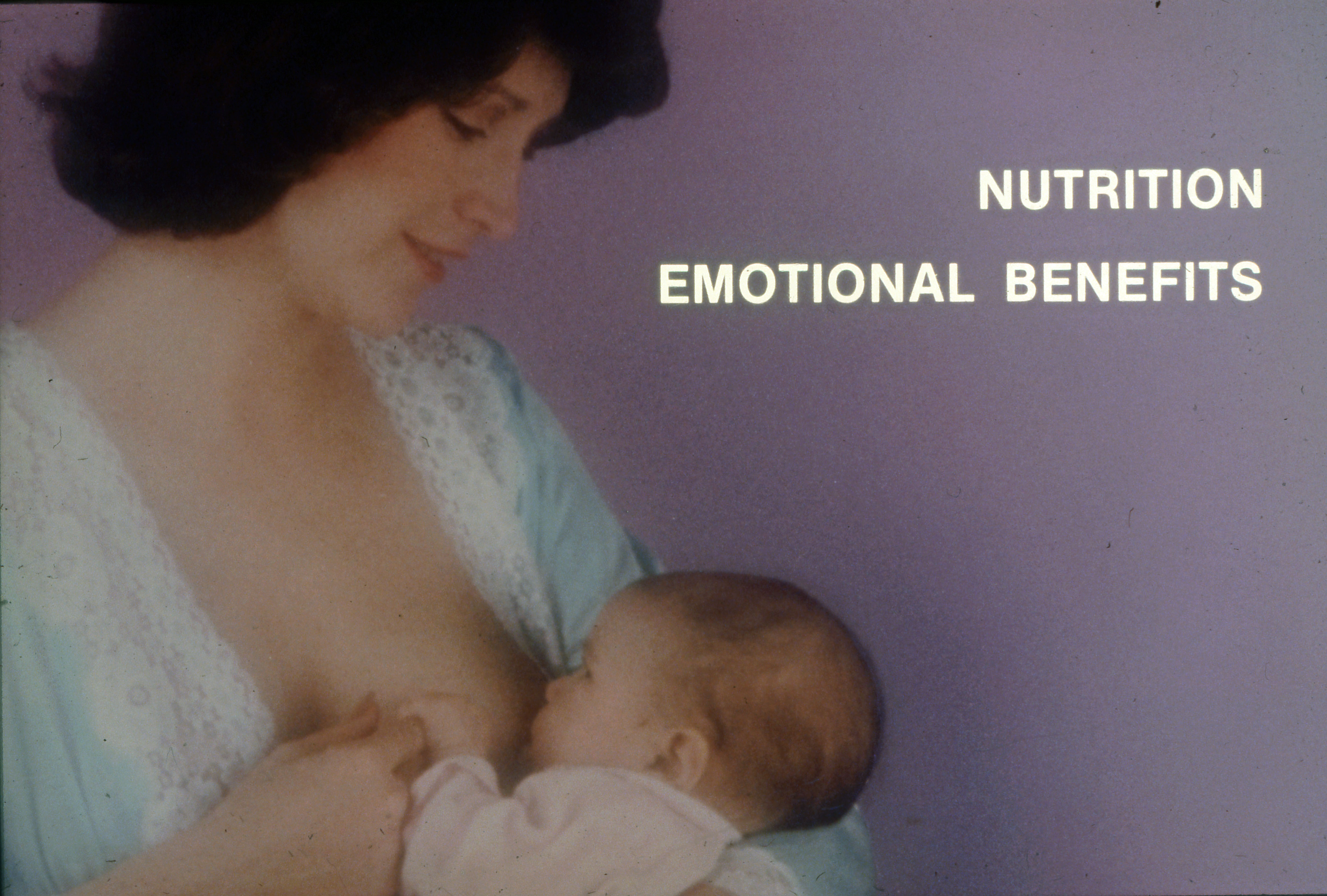 Business presentation of a woman nursing her baby with the words "Nutrition Emotional Benefits"