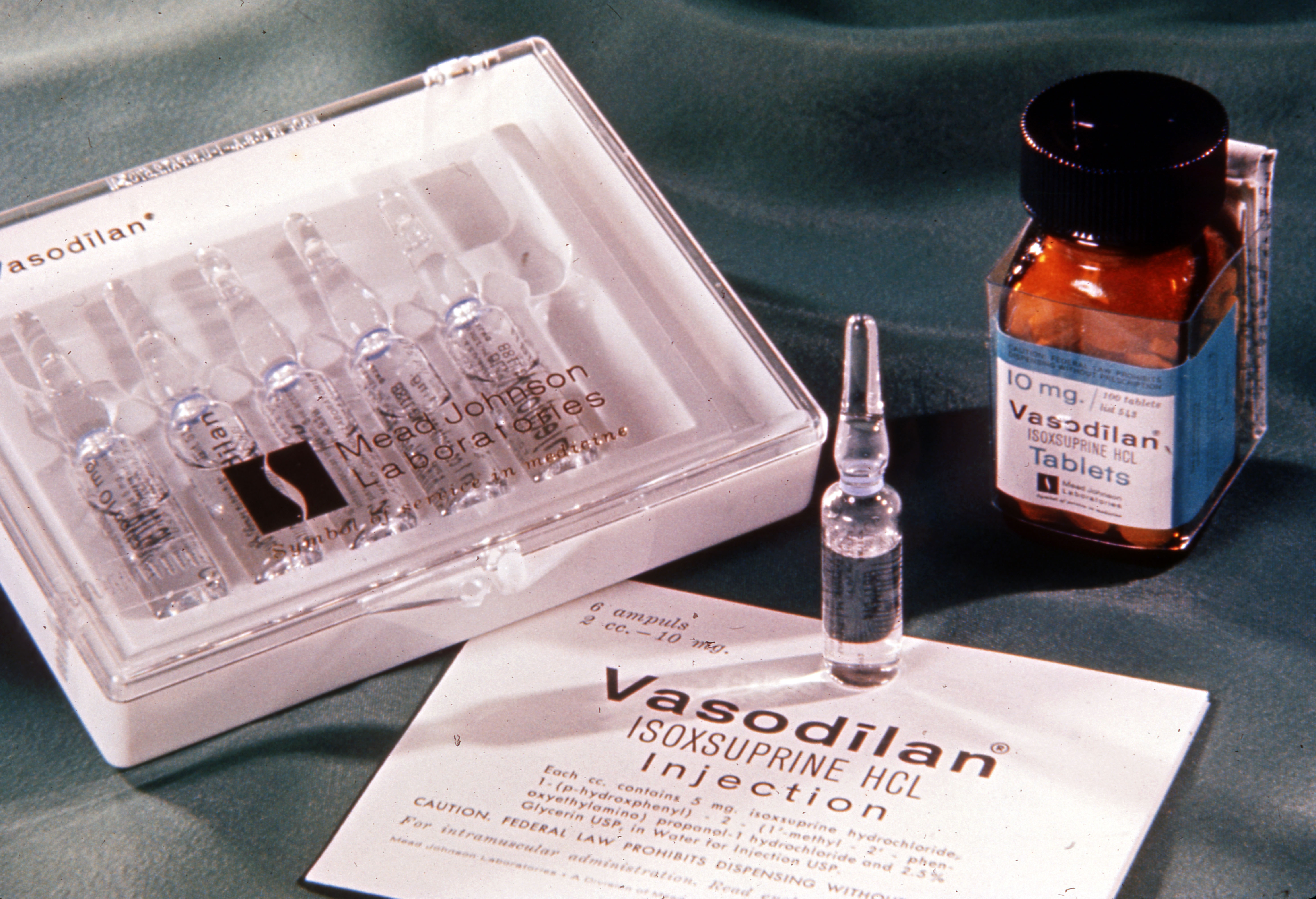 Product samples of Vasodilan in injectable and tablet format
