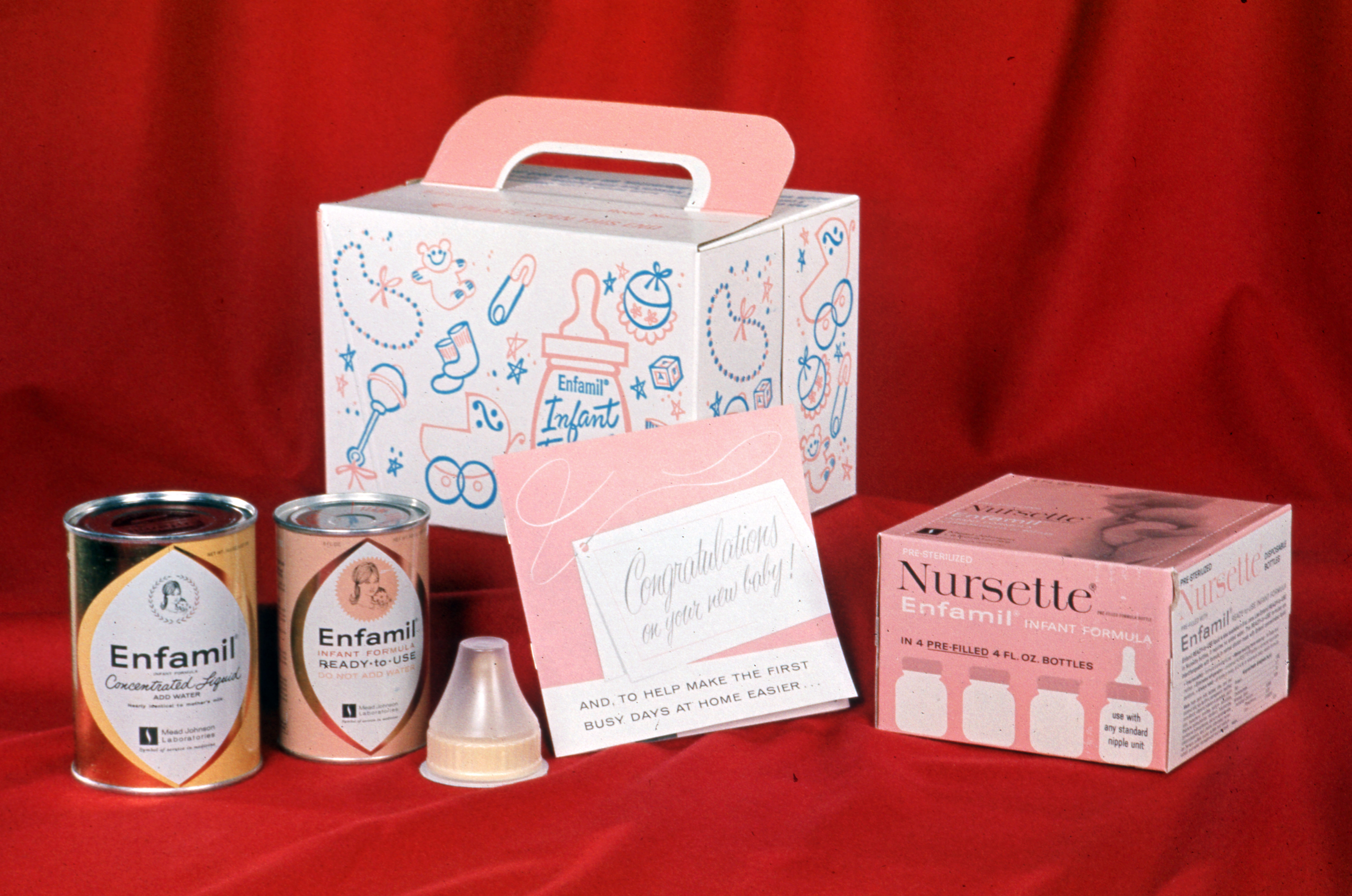 Advertisement of Enfamil products in a decorative box to give to a new mother