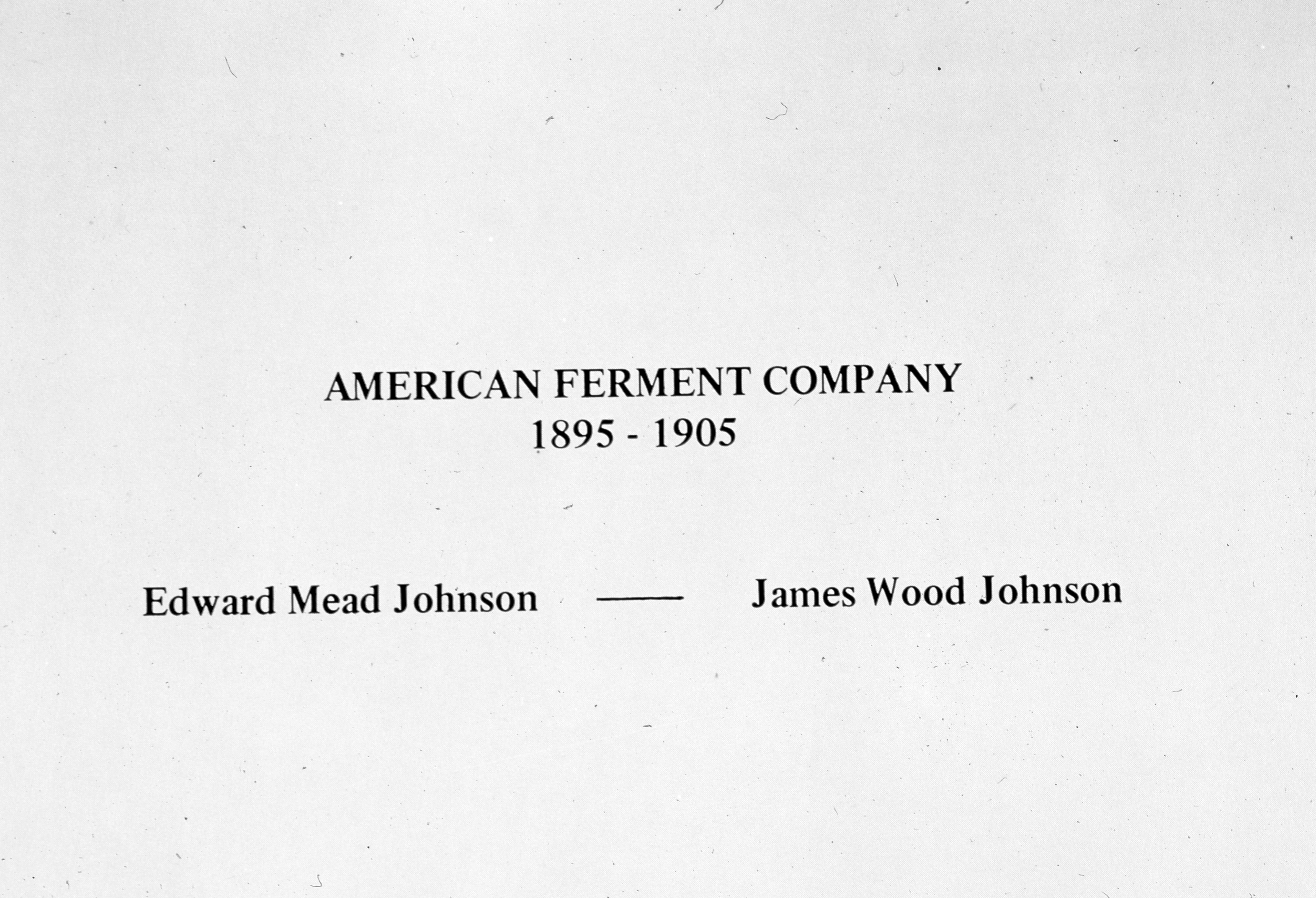 Graphic of the pre-history of the Mead Johnson Company. James Wood Johnson and his brother Edward Mead Johnson operated the American Ferment Company 1895-1905 in Jersey City, New Jersey. In 1905 the name was changed to Mead Johnson and the company soon op