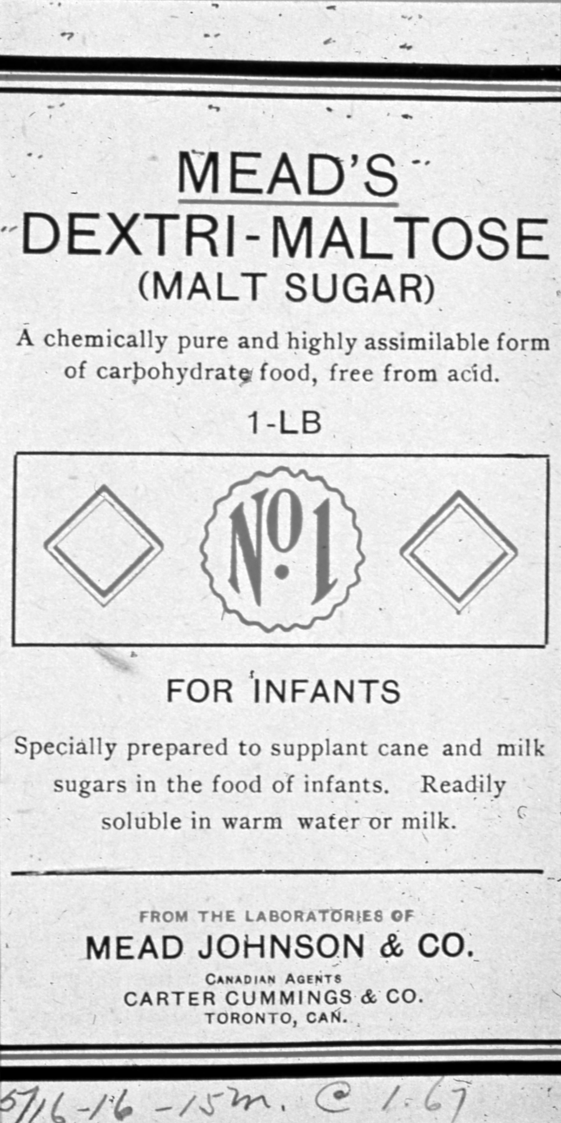 Advertisement in a professional journal for Mead Johnson's Dextri-Maltose product. It references the Canadian agent for Mead Johnson, so this might have been in a Canadian journal