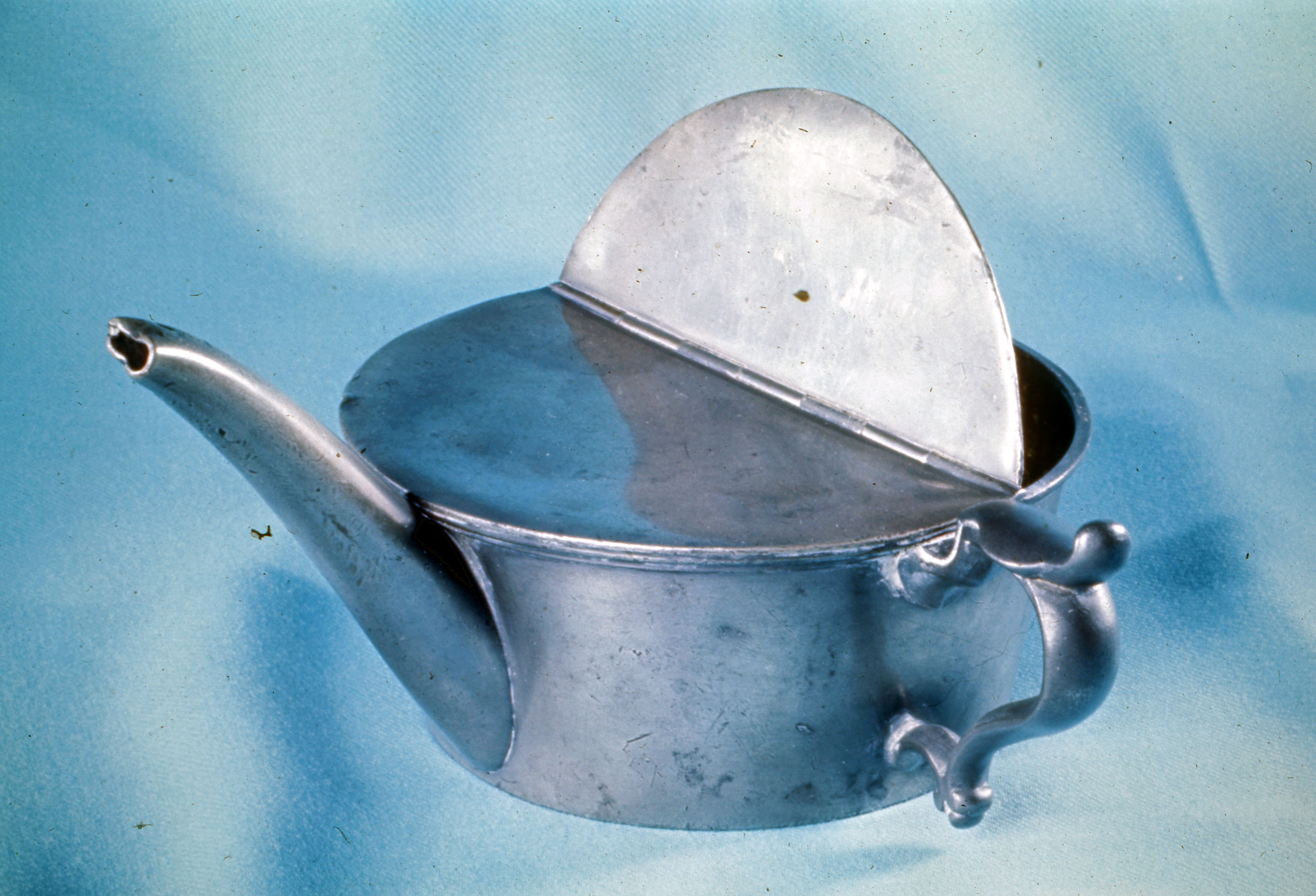Antique pediatric nurser with handle made of metal--Pewter feeding pot ca. 1780