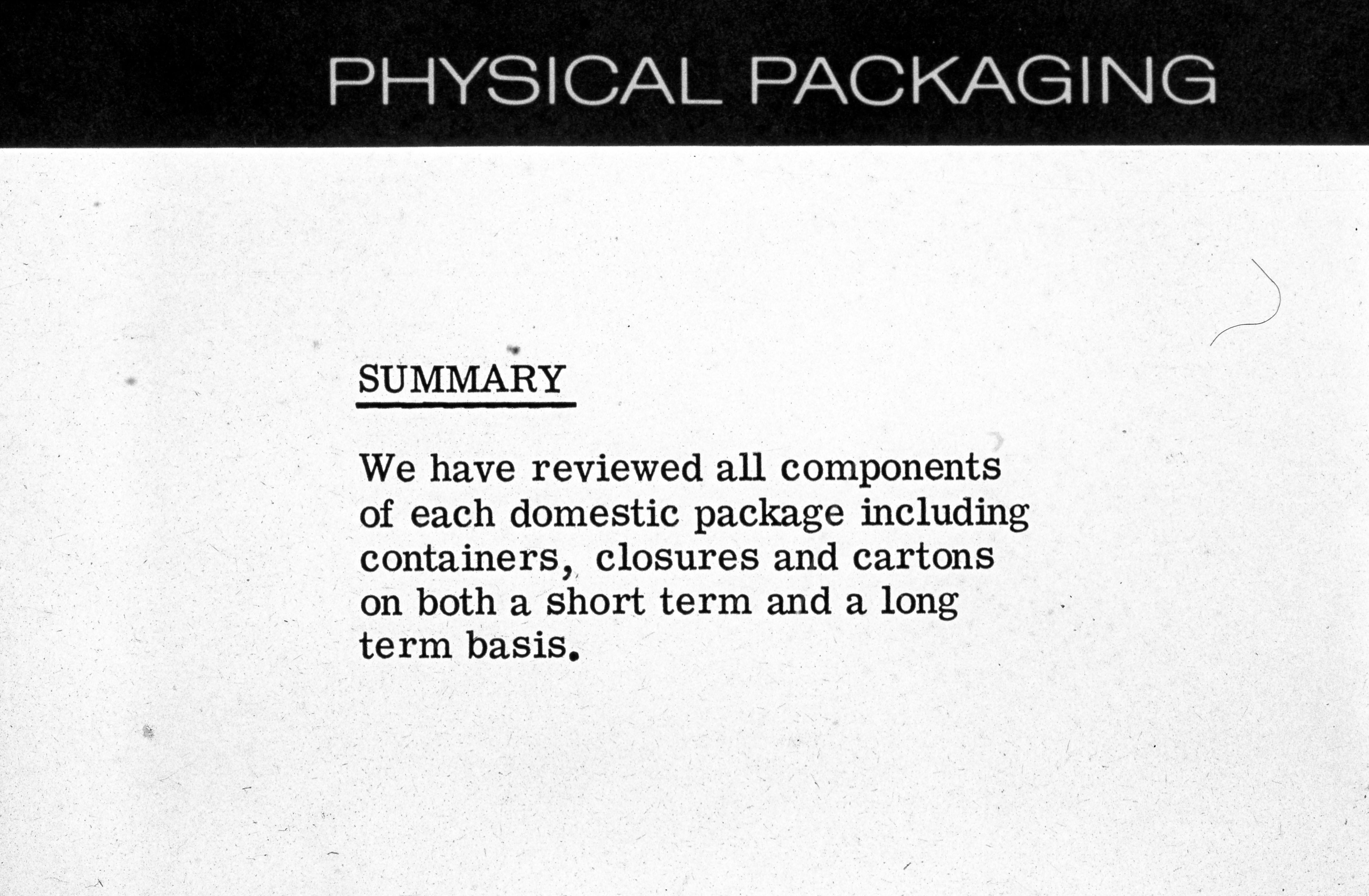 Business presentation on physical packaging: summary