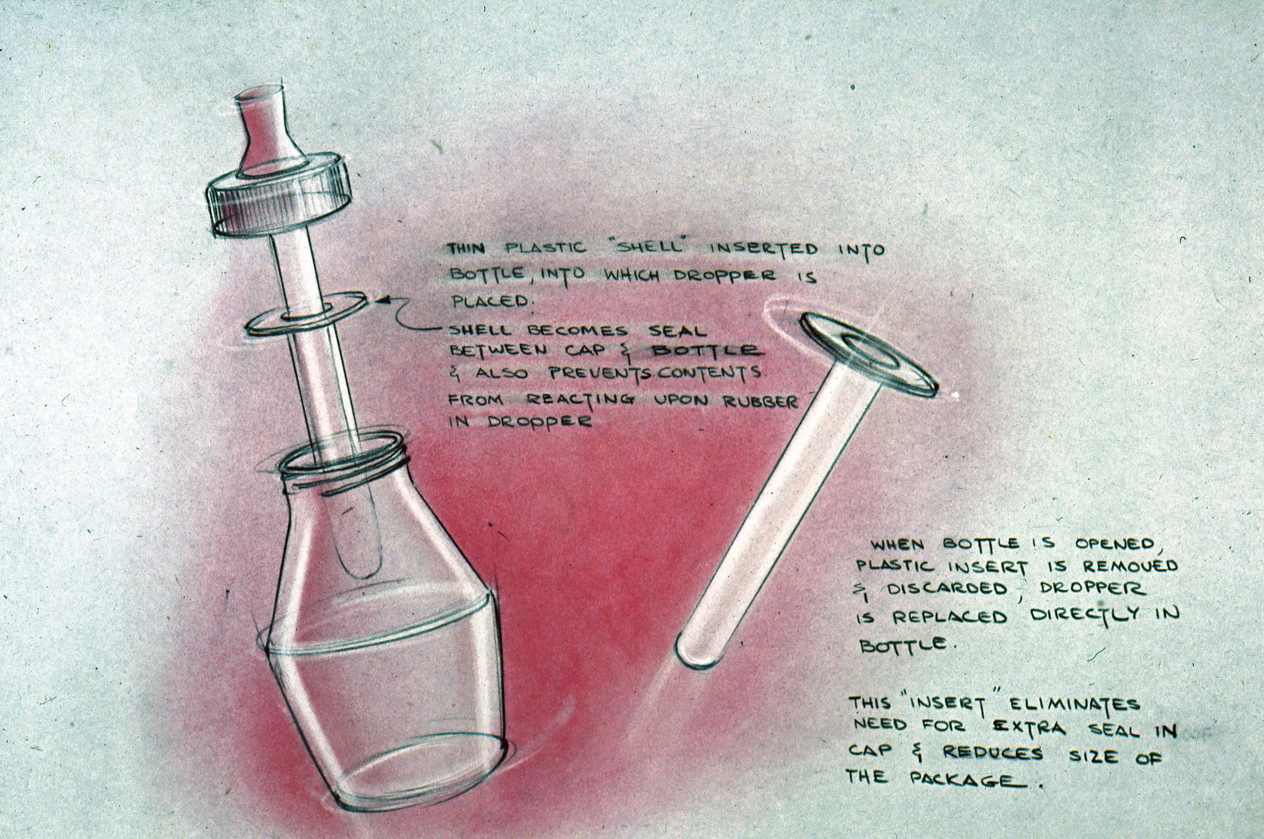 Business presentation on physical packaging: drawing of bottle and stoppers