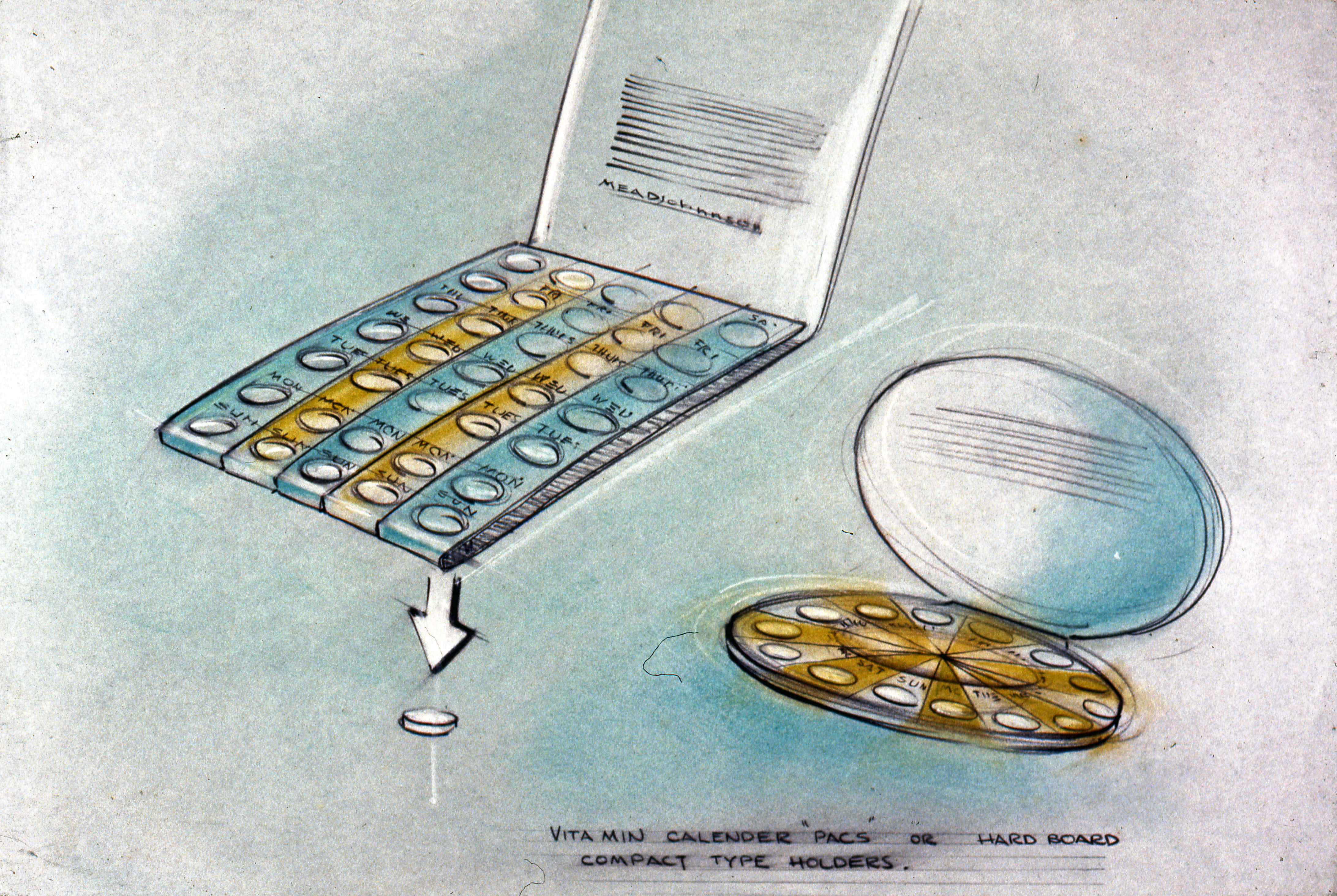 Business presentation on physical packaging: drawing of vitamin calendar packs