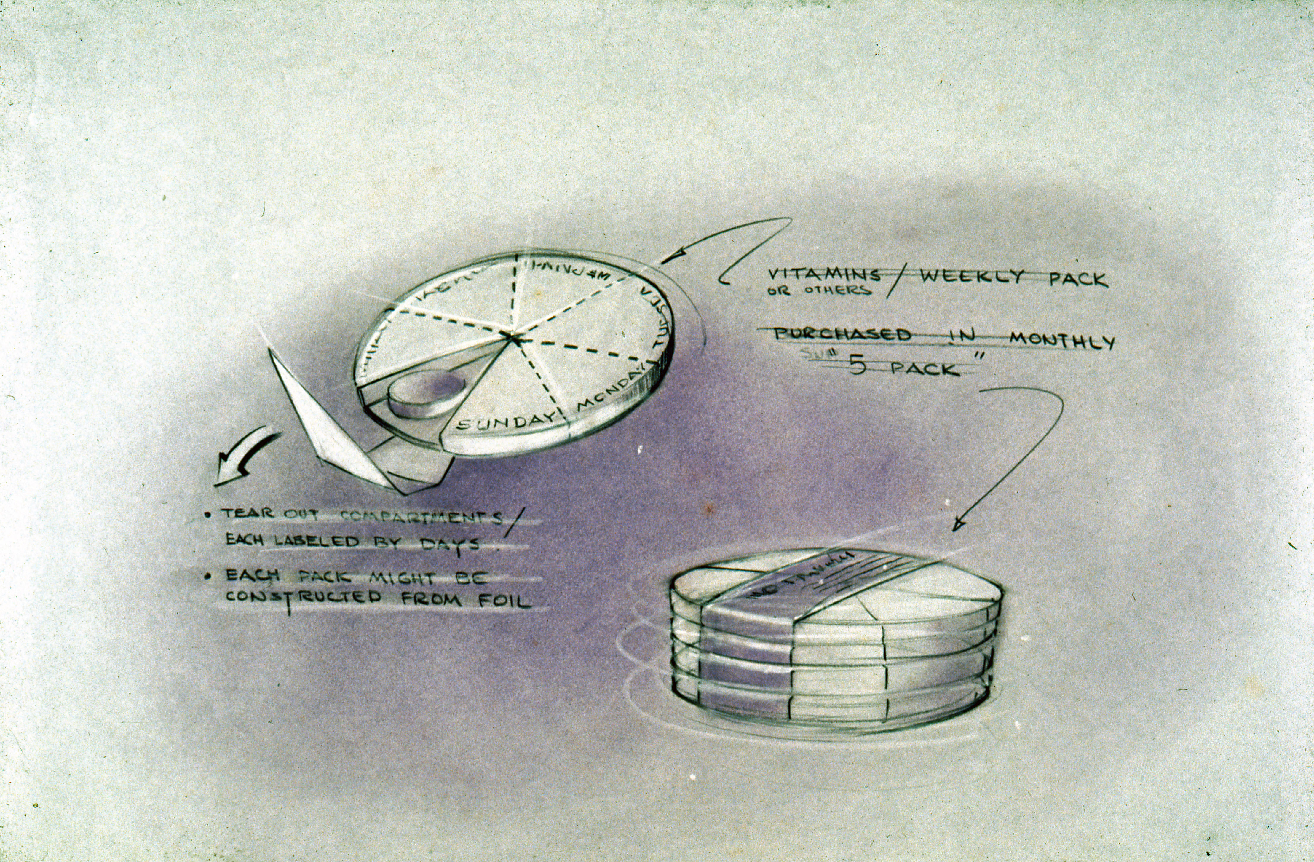 Business presentation on physical packaging: drawing of vitamin weekly packs