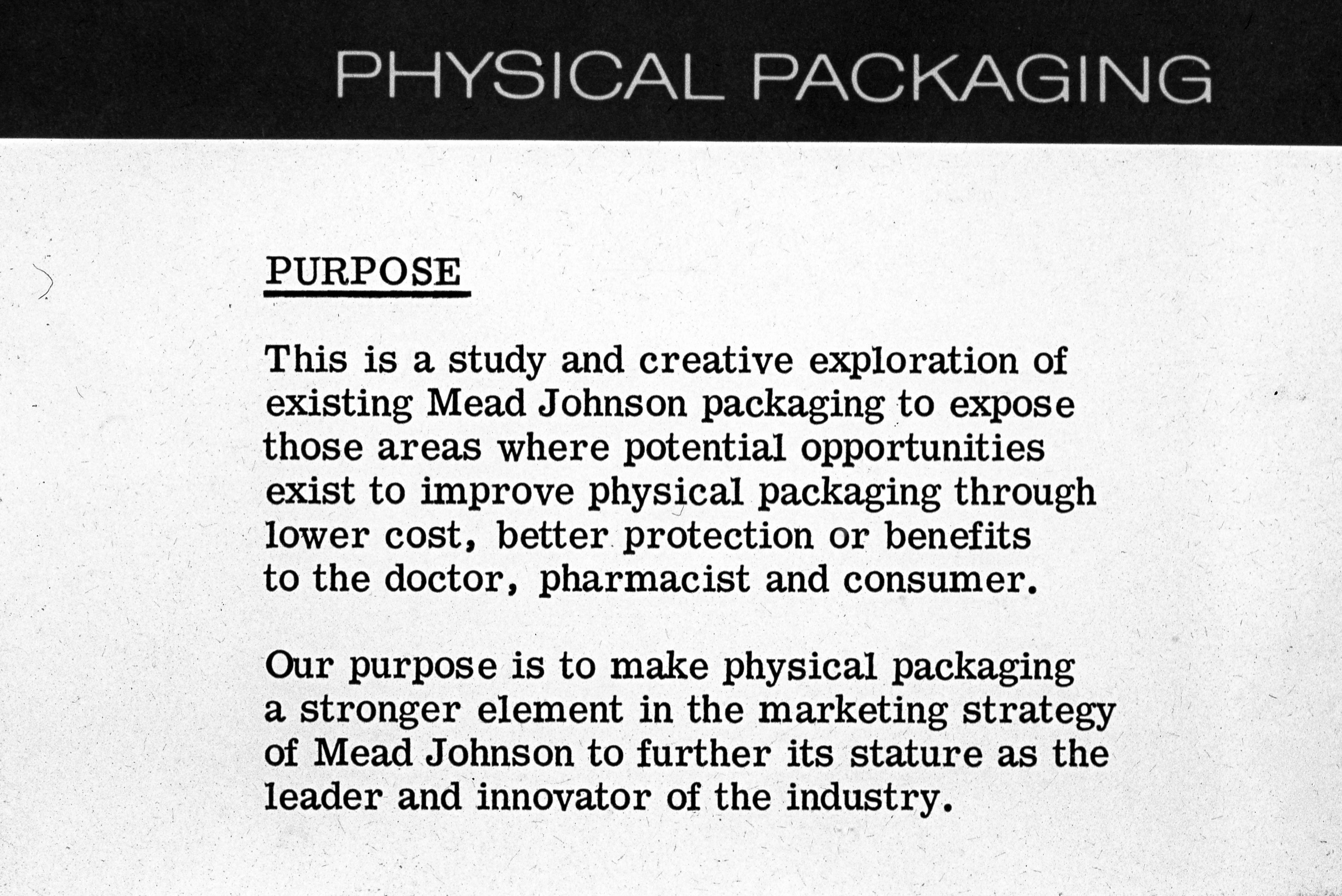 Business presentation on physical packaging: text explaining the purpose