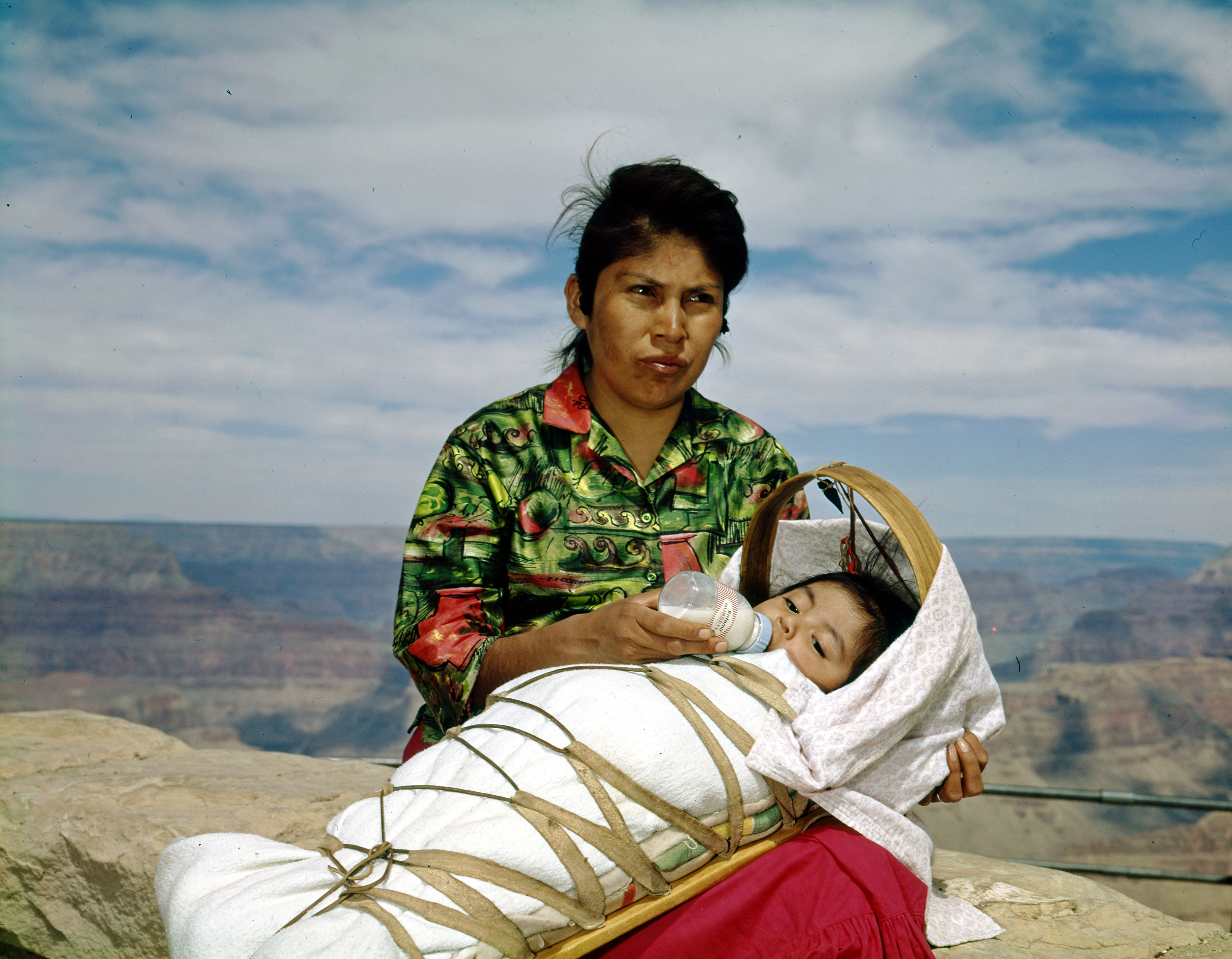 Advertisement and promotional infant photo for Enfamil with a Native American mother and baby in a setting meant to represent the southwestern U.S.