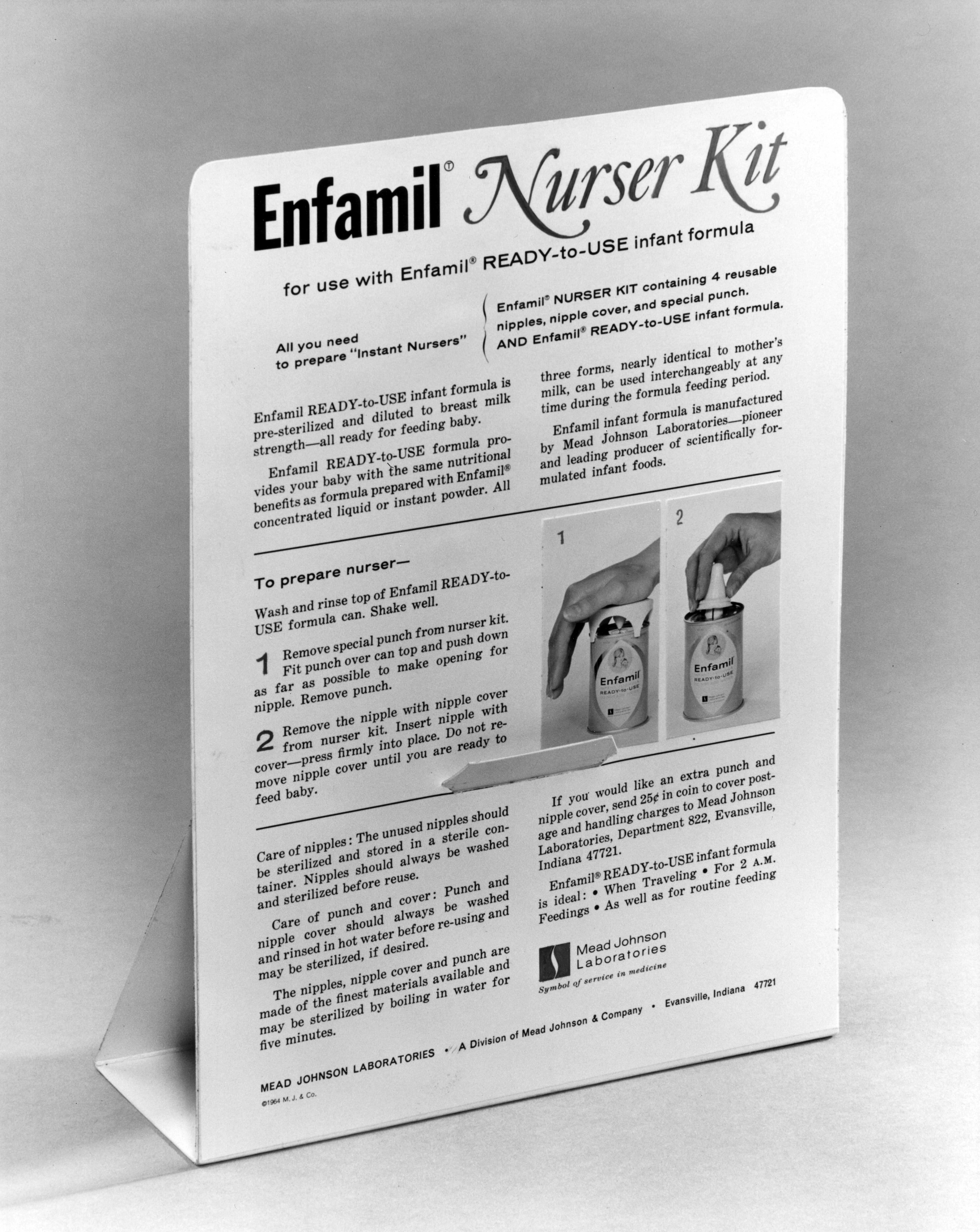 Package instructions for using Mead Johnson's Enfamil Nurser Kit in Evansville, Indiana