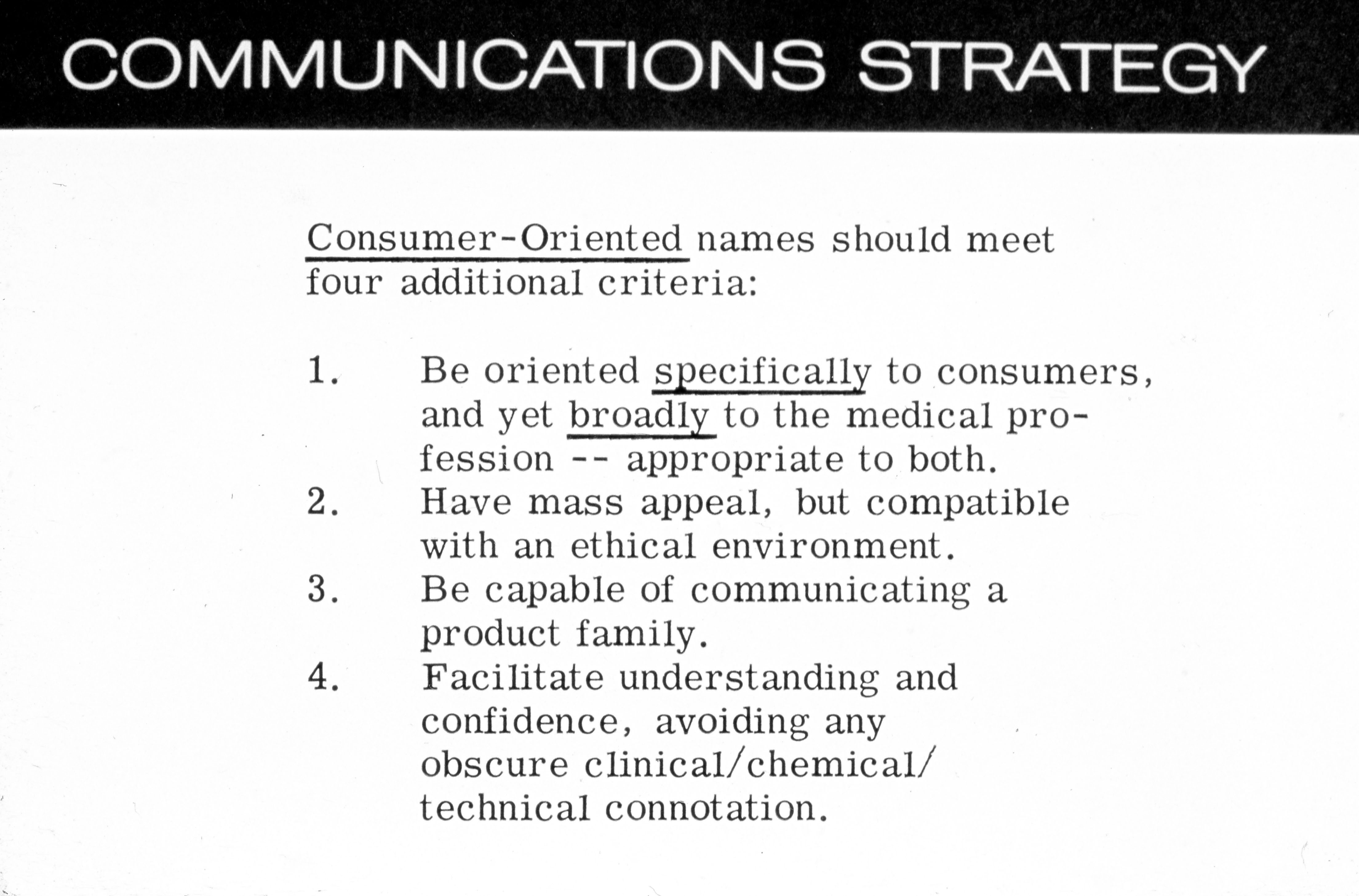 Business presentation on Mead Johnson communications strategy: extra criteria for all consumer-oriented brand names to meet