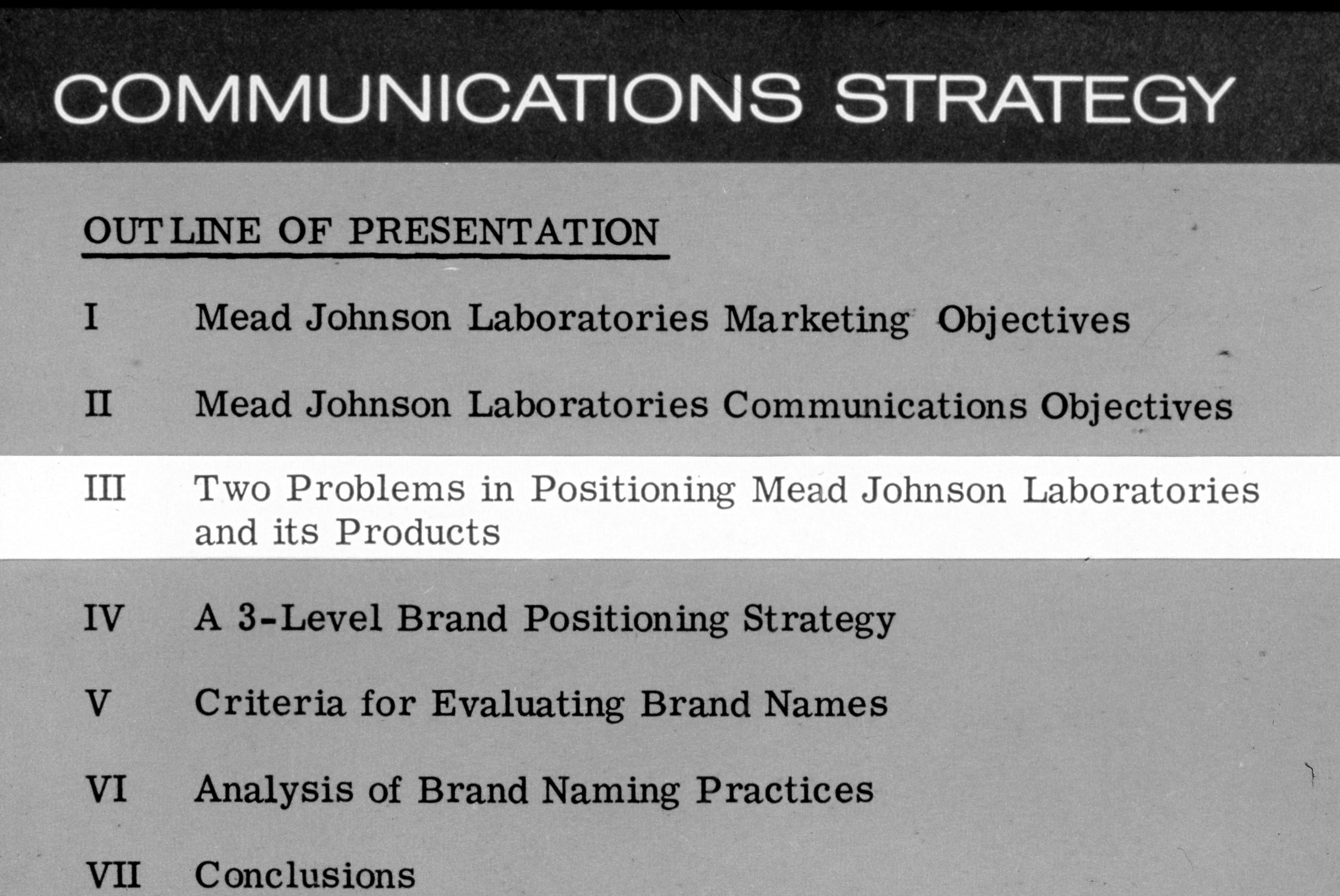 Business presentation on Mead Johnson communications strategy: two problems in positioning Mead Johnson Laboratories and its products