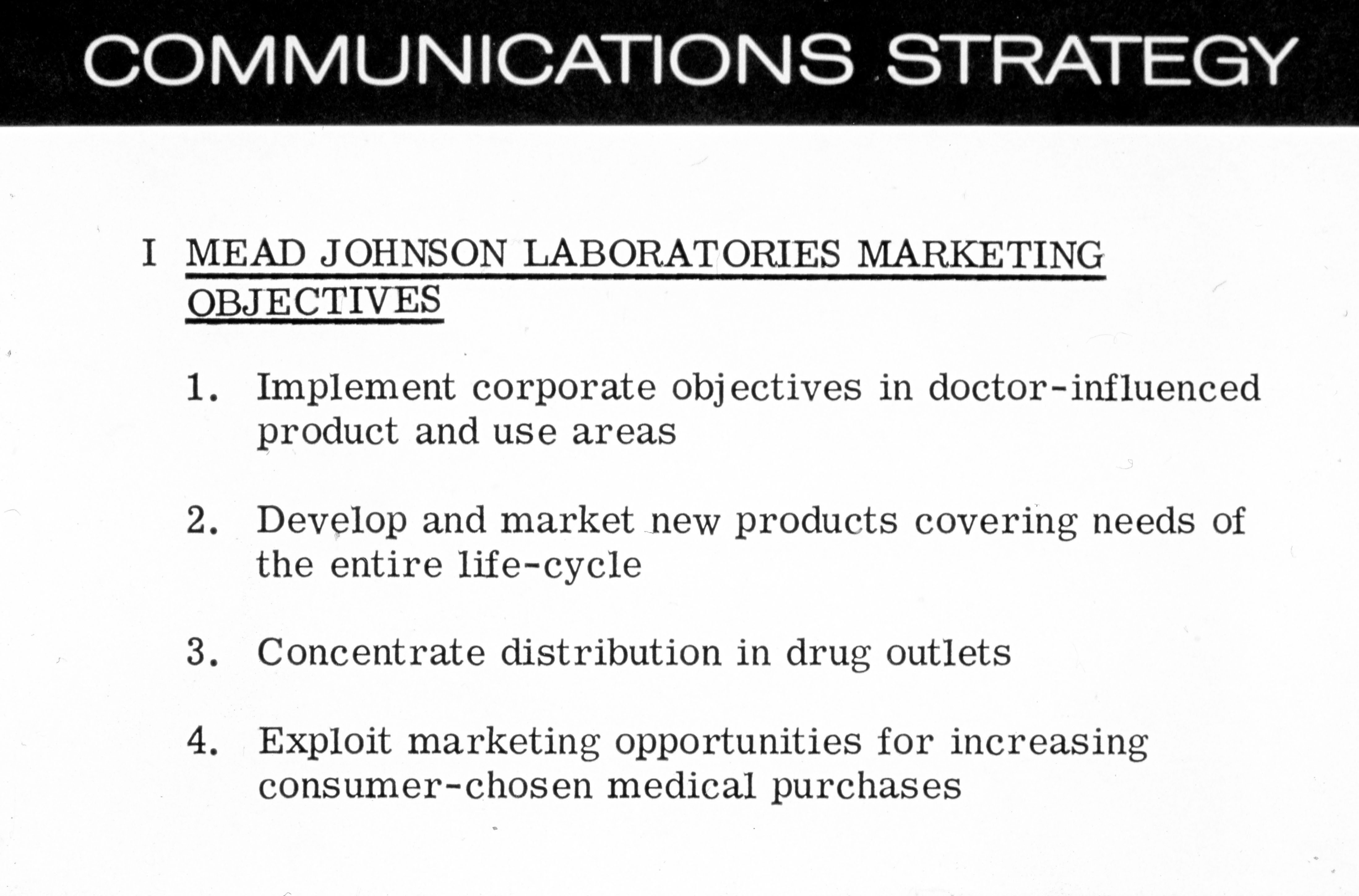 Business presentation on Mead Johnson communications strategy: Mead Johnson Laboratories marketing objectives