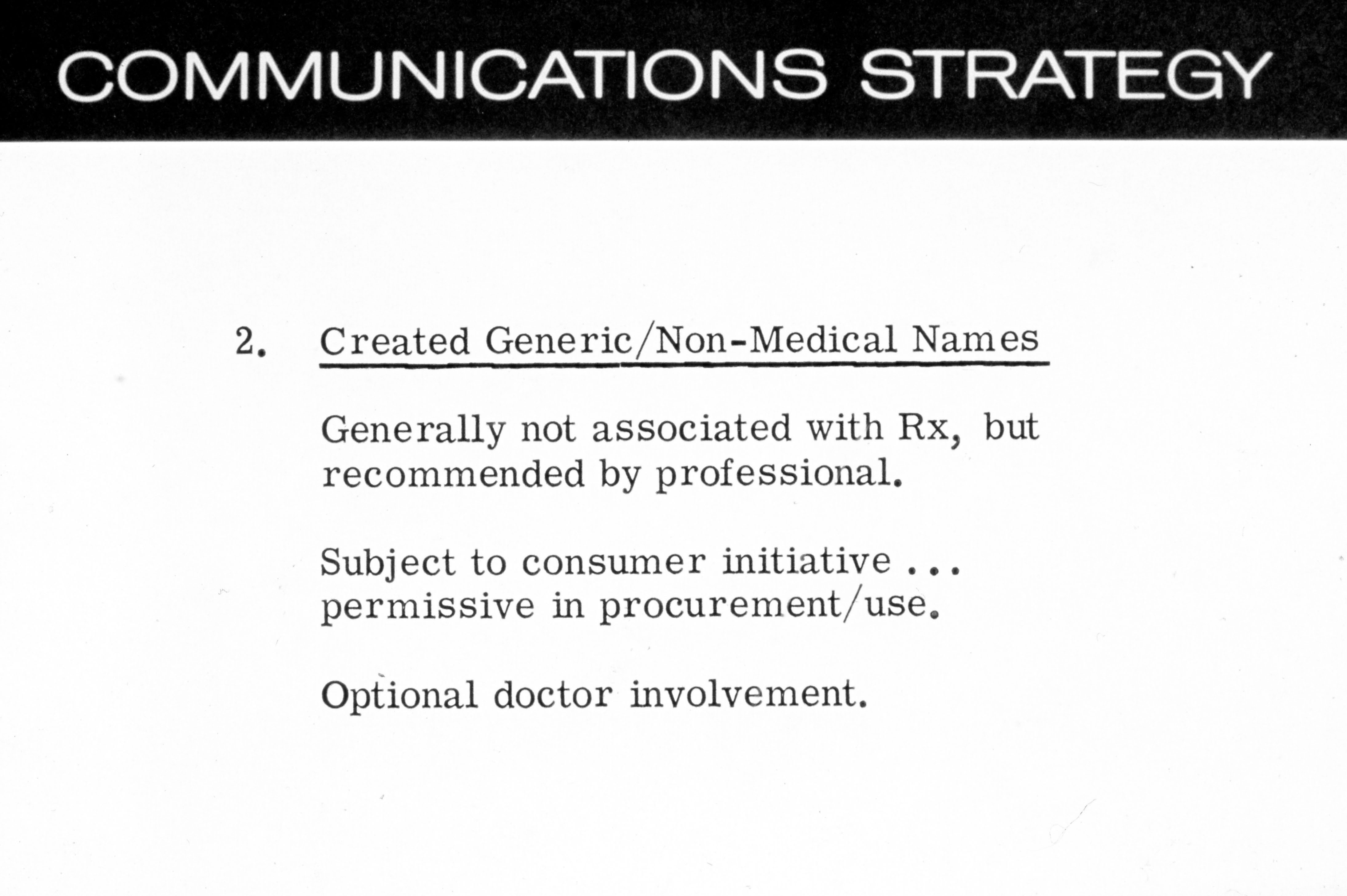 Business presentation on Mead Johnson communications strategy: created generic/non-medical names