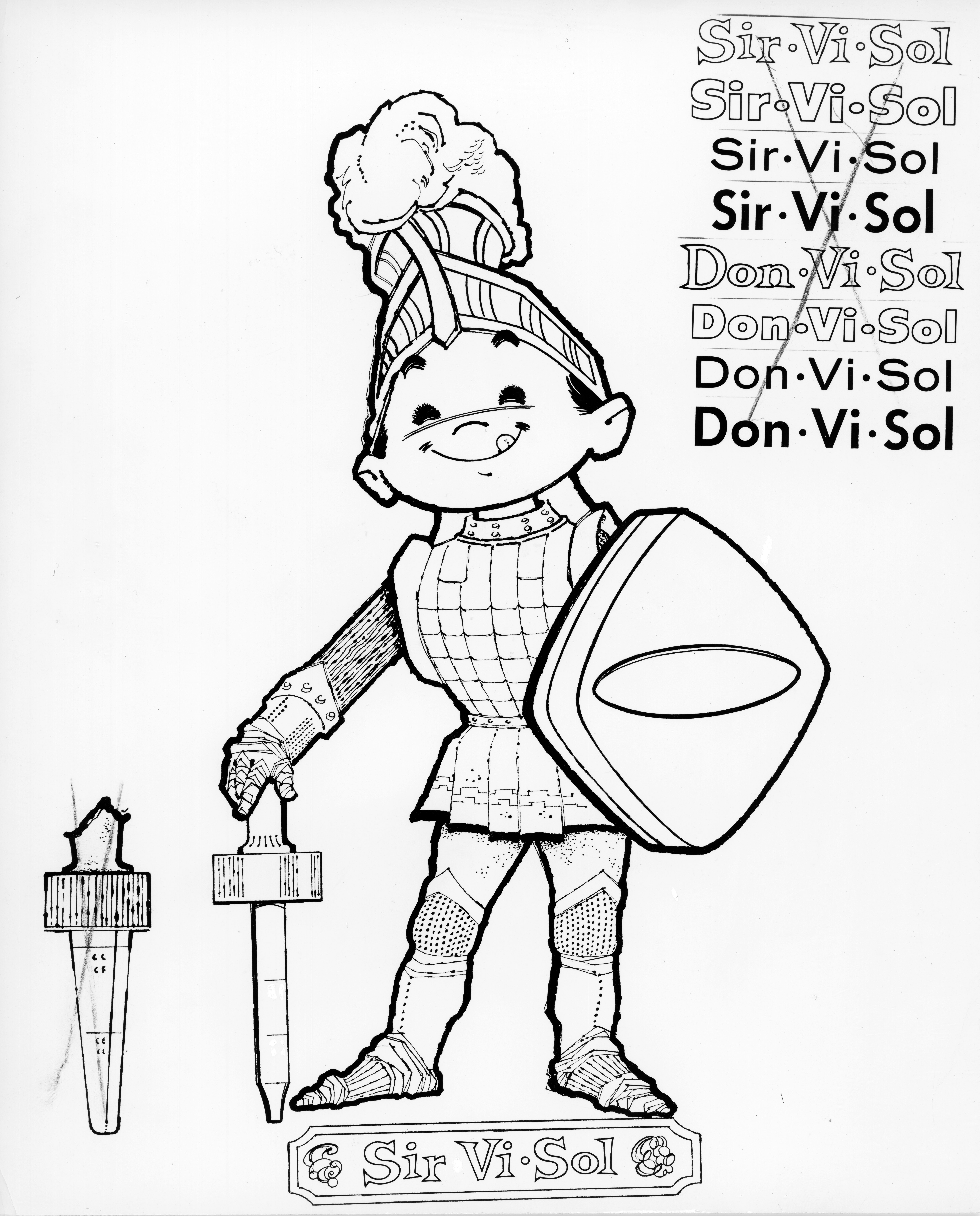 Sir Vi-Sol cartoon figure, showing design changes