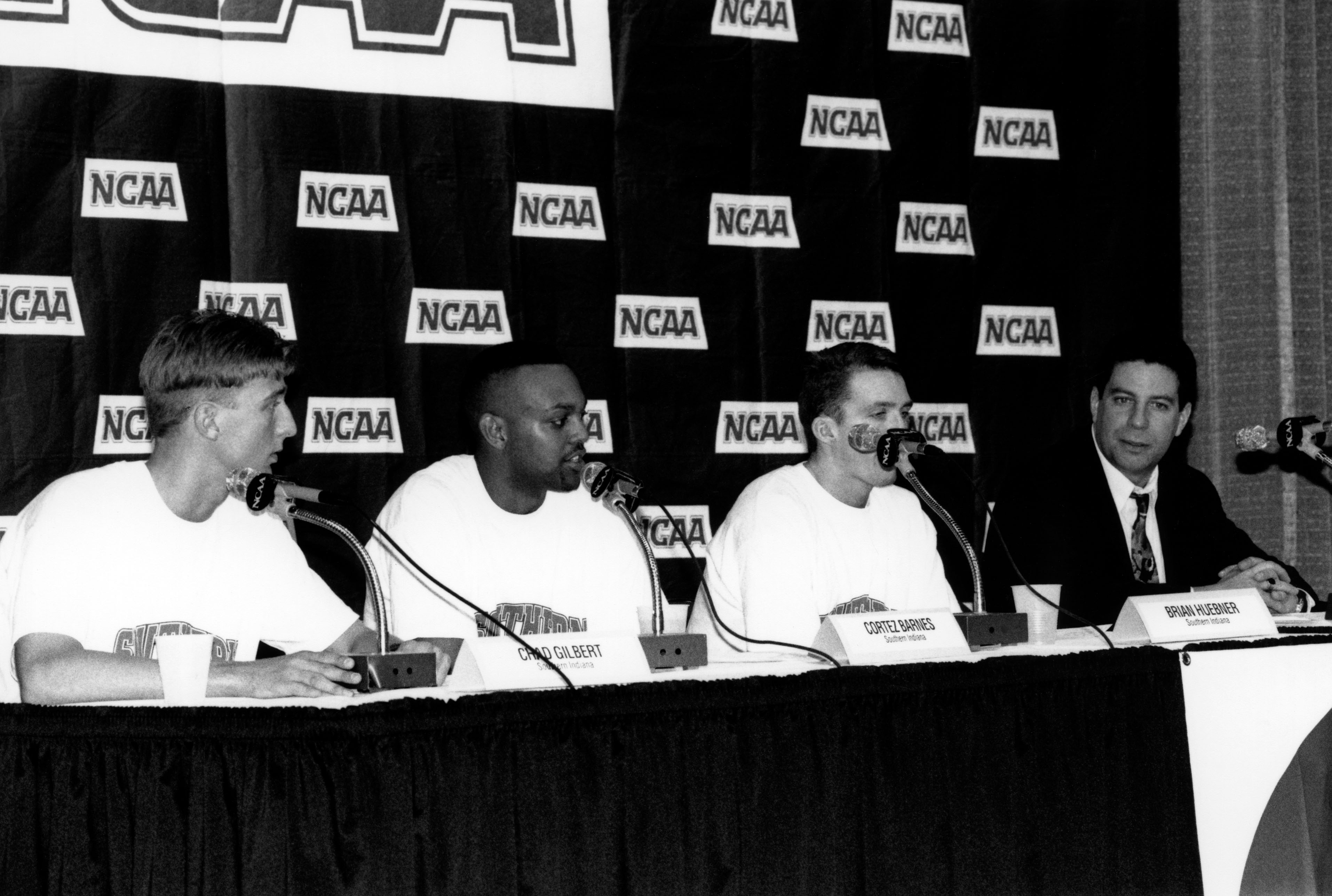 Men's basketball players Chad Gilbert, Cortex Barnes, Brian Huebner and coach Bruce Pearl