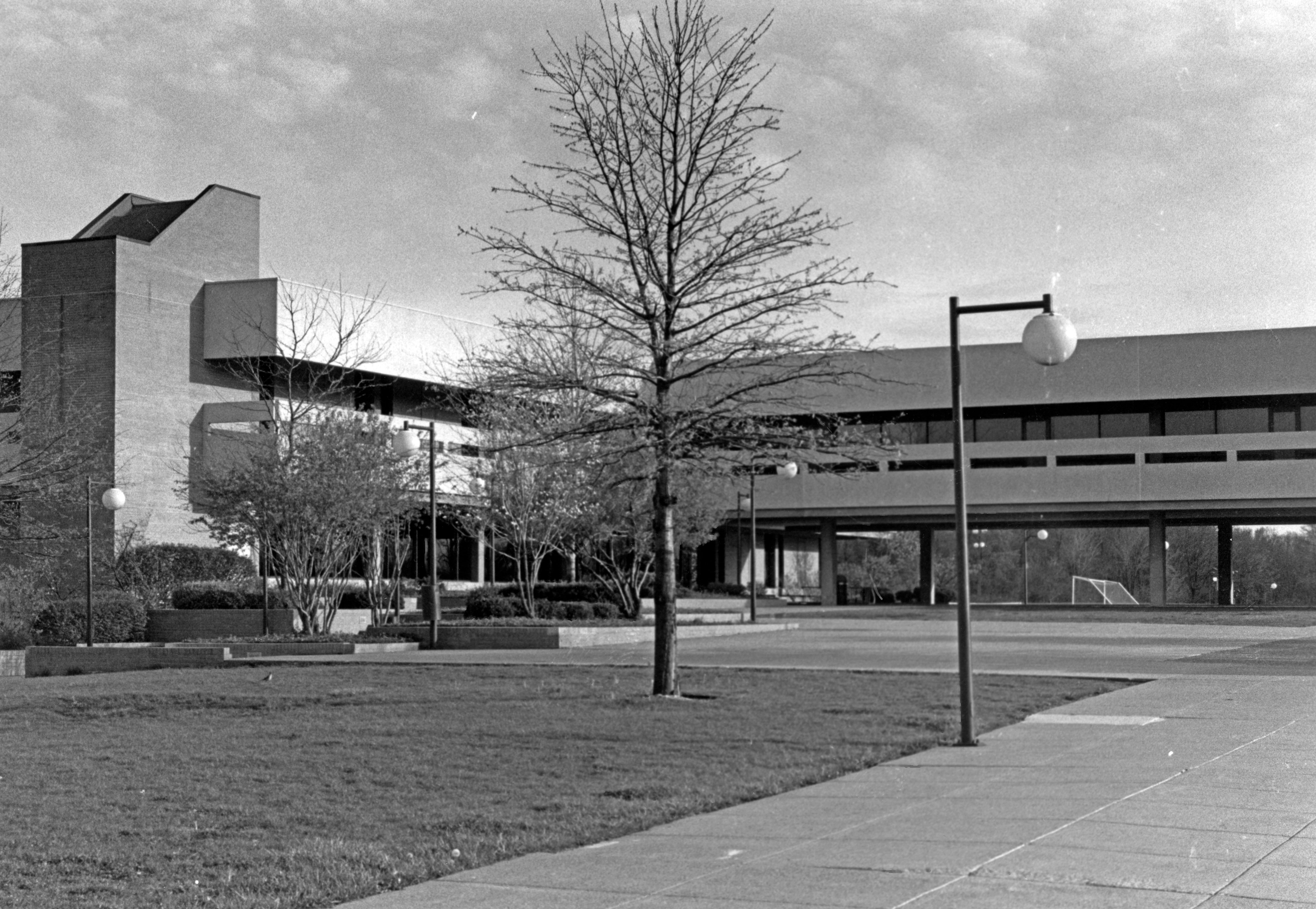 Original David L. Rice Library (with bridge to University Center, unseen on right)