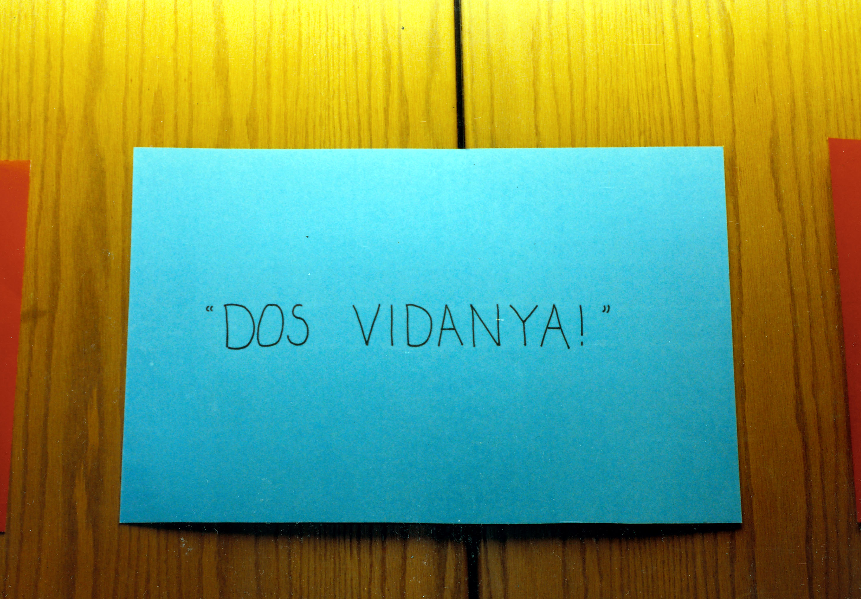 Sign at Daniel Miller's retirement reception. The sign says goodbye in Russian.
