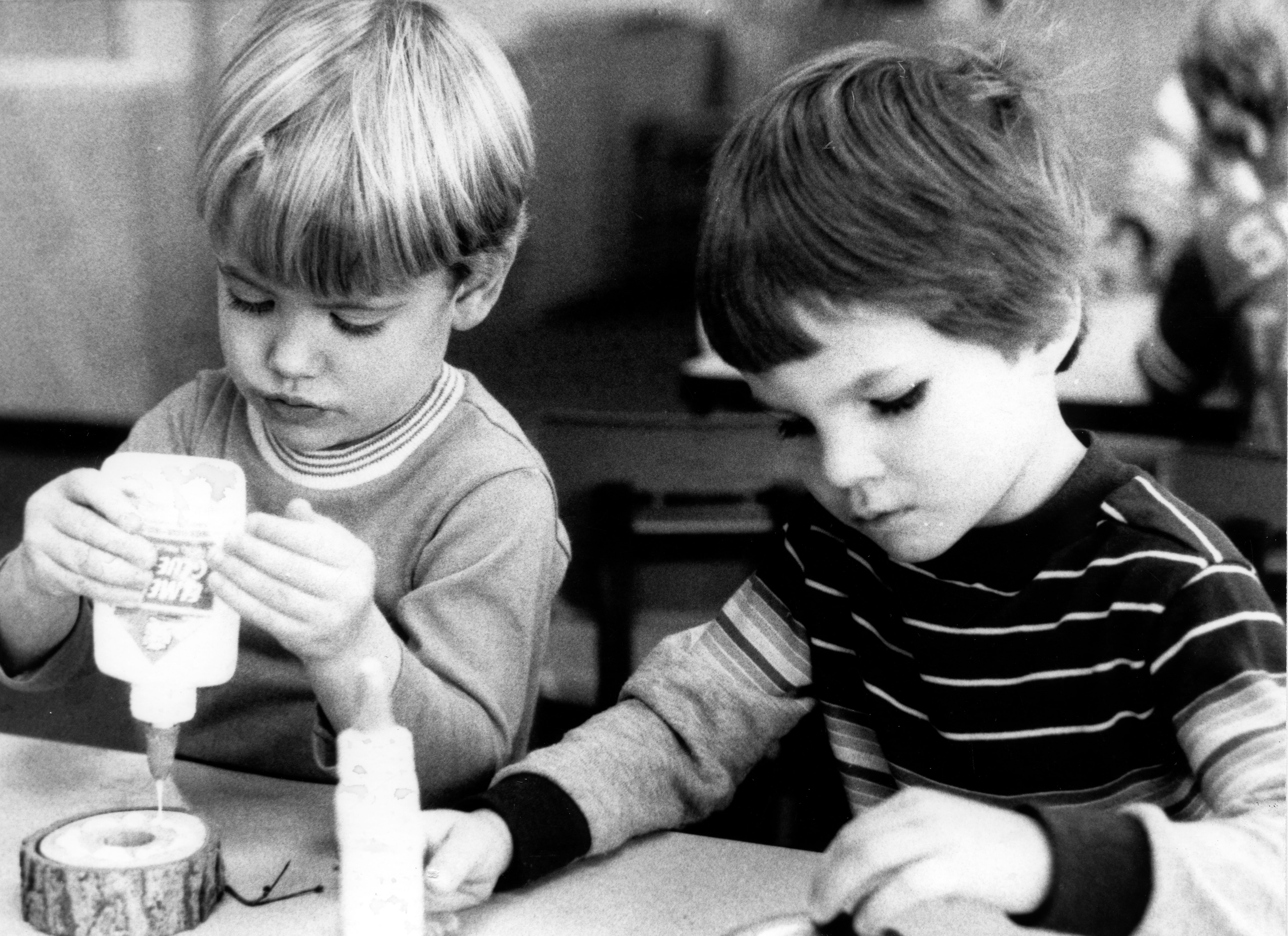 Children's center, children gluing a craft project